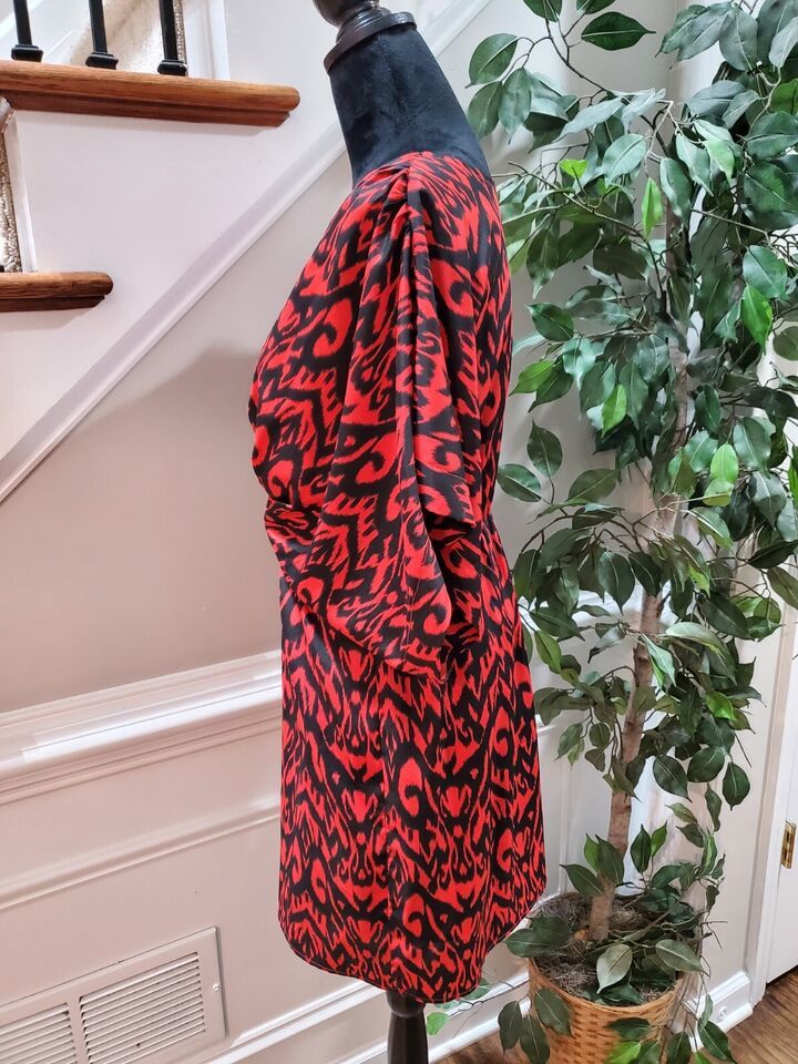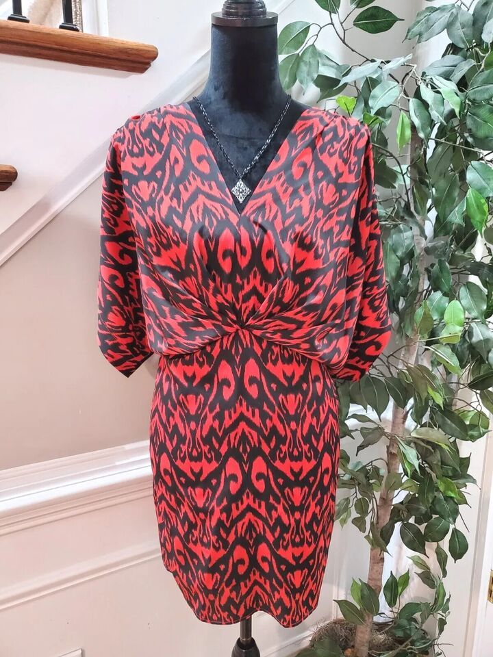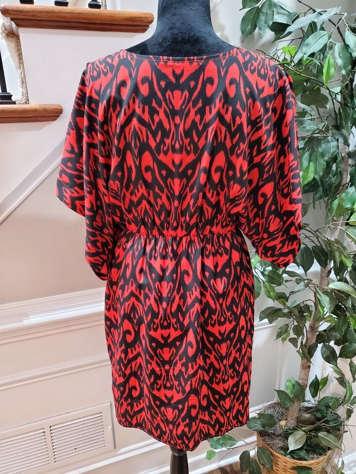 Collective Concepts Women Red Polyester V-Neck Short Sleeve Knee Length Dress S