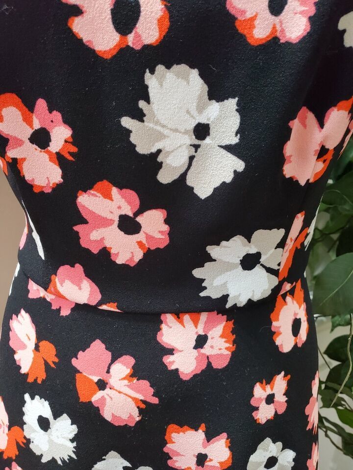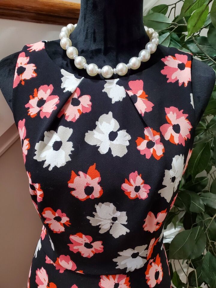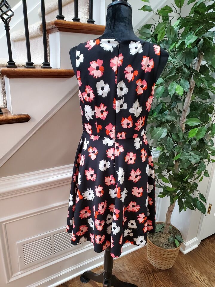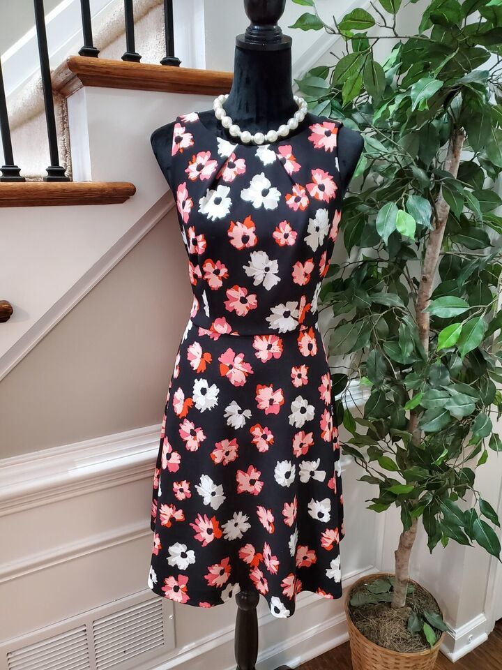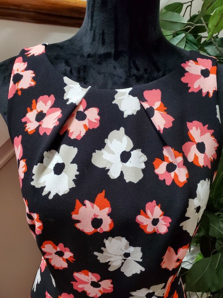 Elle Women Black Floral Polyester Round Neck Sleeveless Knee Length Dress Size S