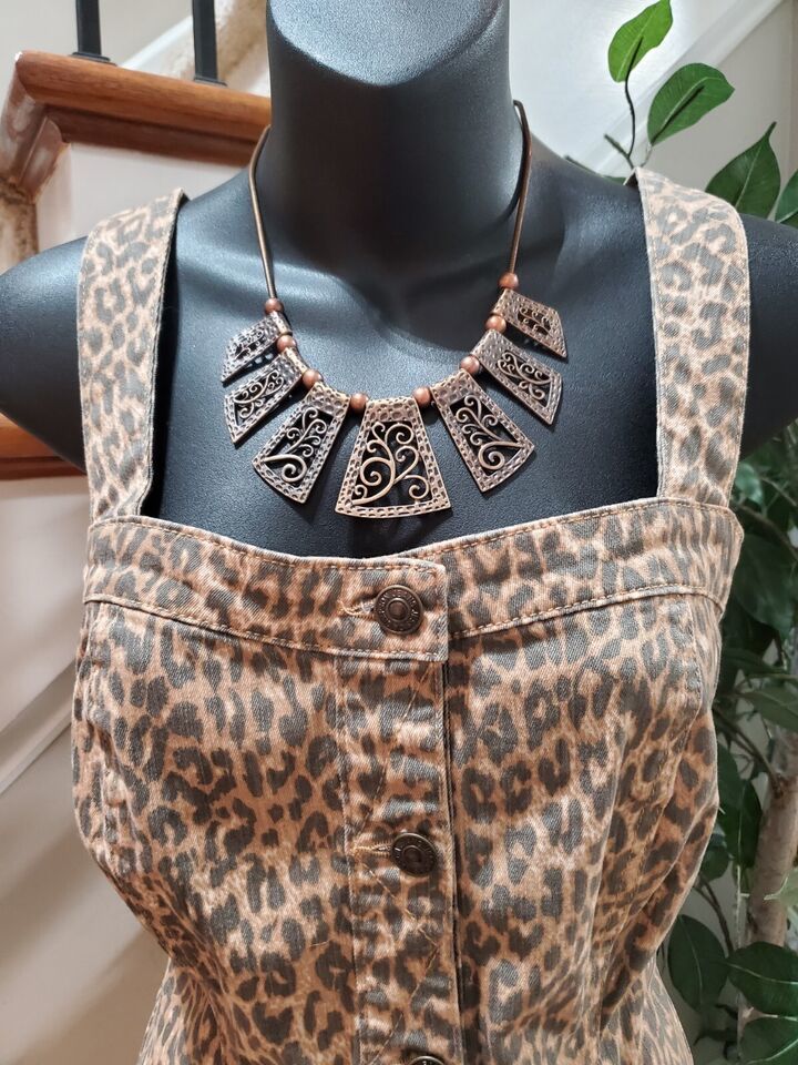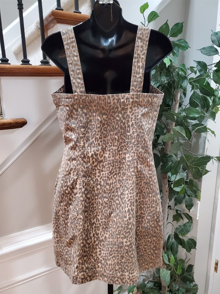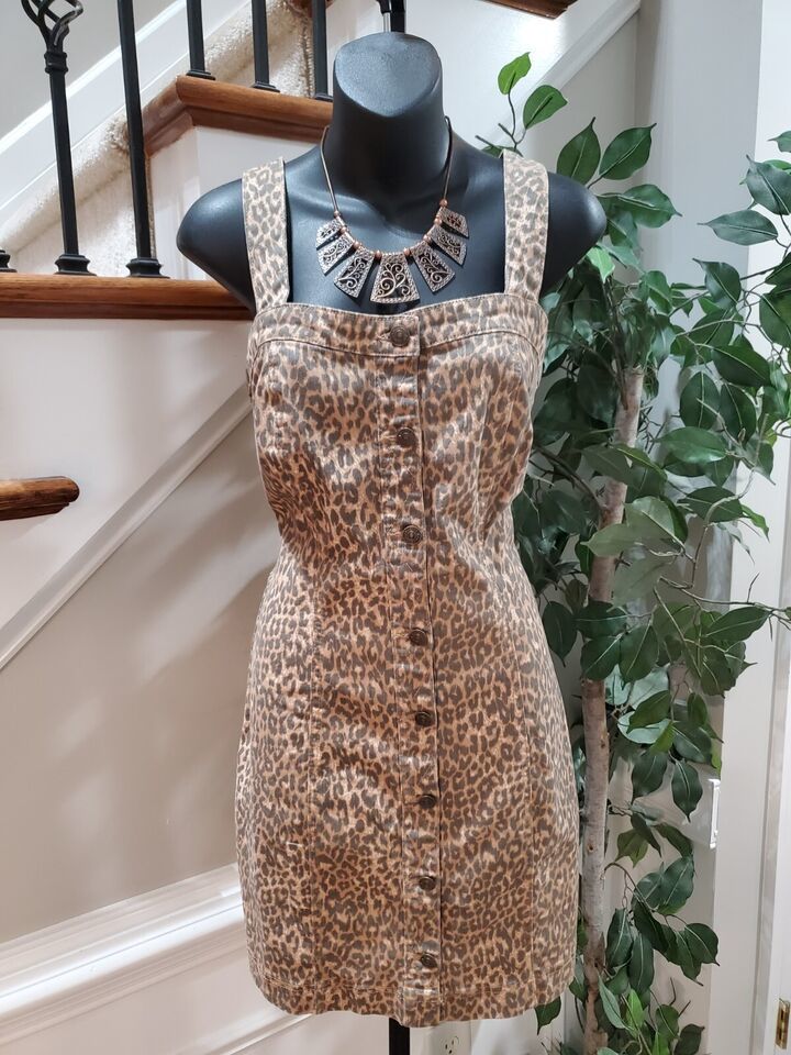 Jessica Simpson Taye Wildcat Brown Animal Print Denim Knee Length Dress Large