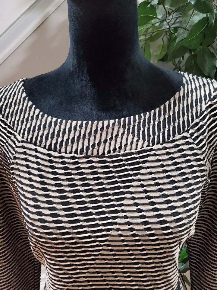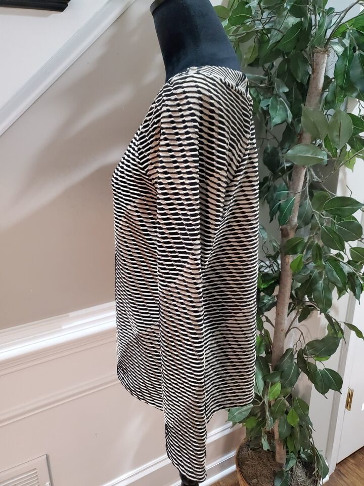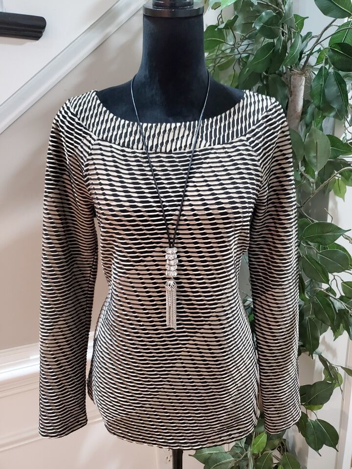 Dana Buchman Women's Black & White Polyester Zip Back Long Sleeve Top Blouse M