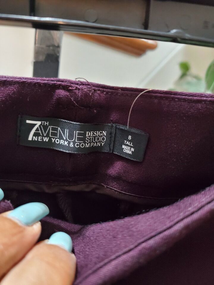 7Th Avenue Women's Solid Purple Polyester Mid Rise Bootcut Stretch Dress Pant 8