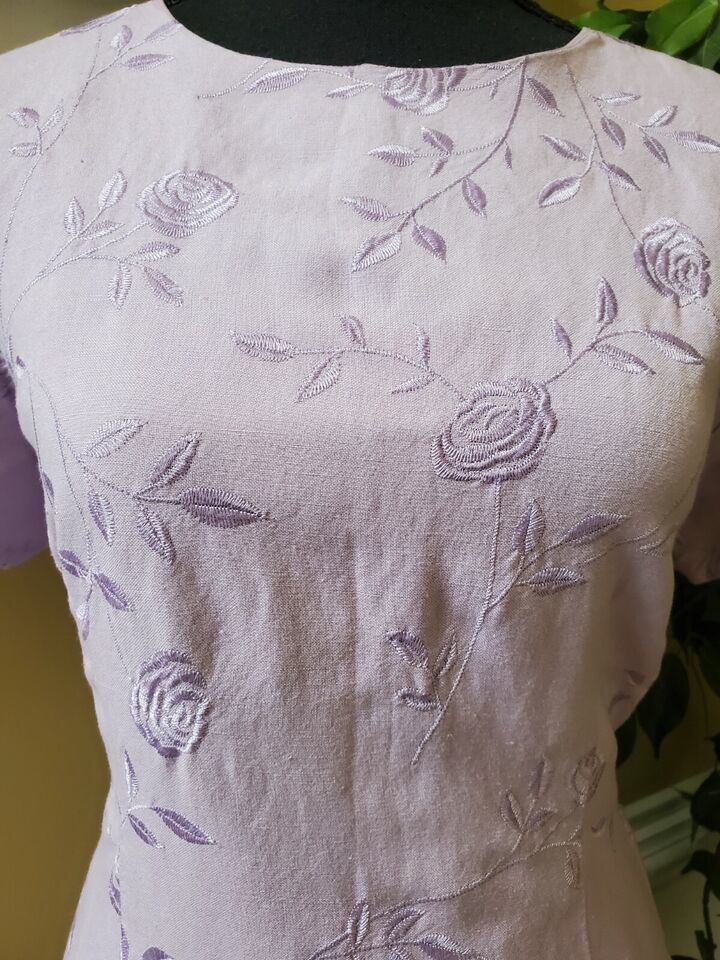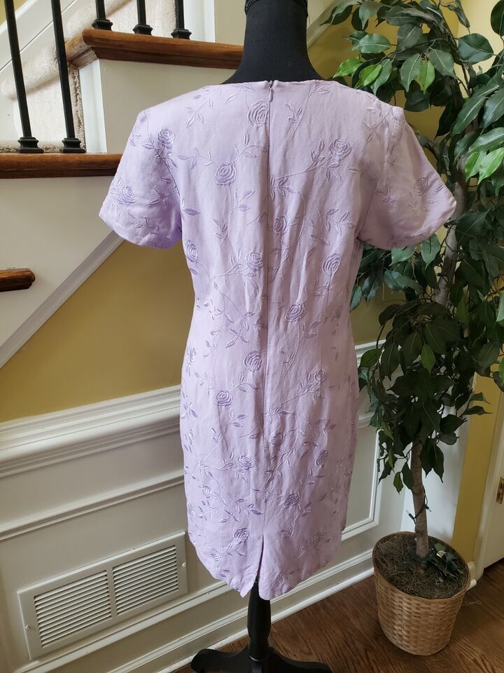 Women's VICTORIA HOLLEY Tan Dress w Floral Embroidery Size 10- Vintage. Condition is "Pre-owned". Shipped with USPS Priority Mail.