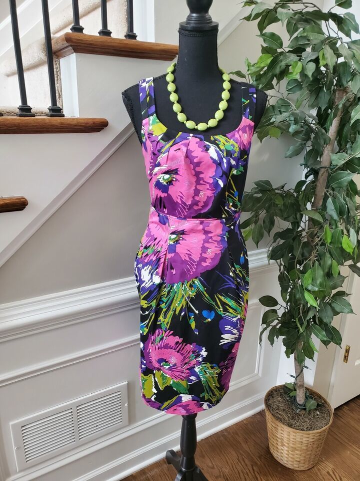 Lanebryant Women Multicolor Floral Cotton Sleevelesss Knee Length Dress Size 14.