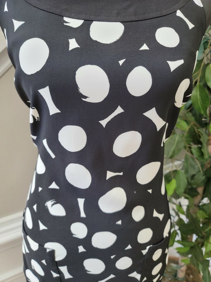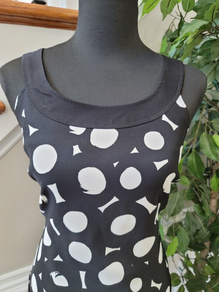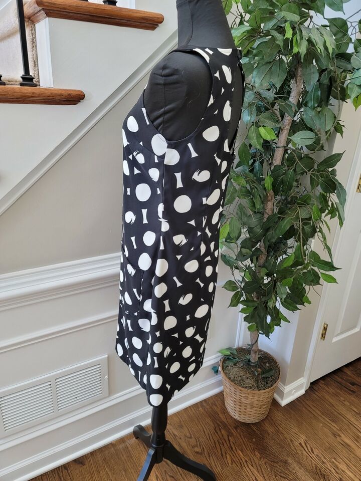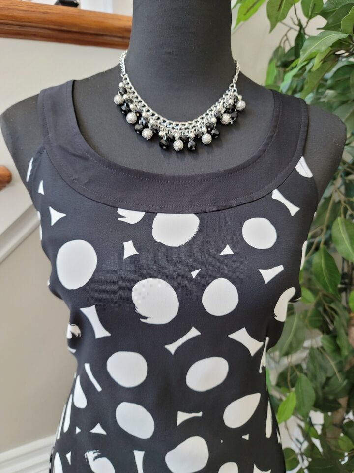 AGB Women's Black White Polyester Round Neck Sleeveless Knee Length Dress 6