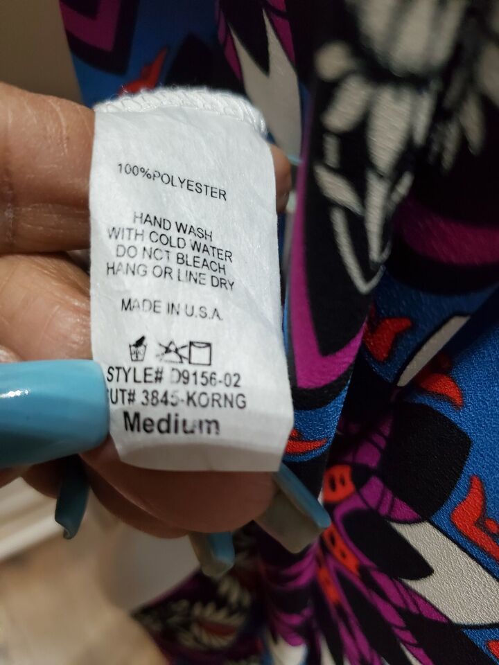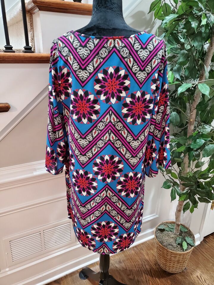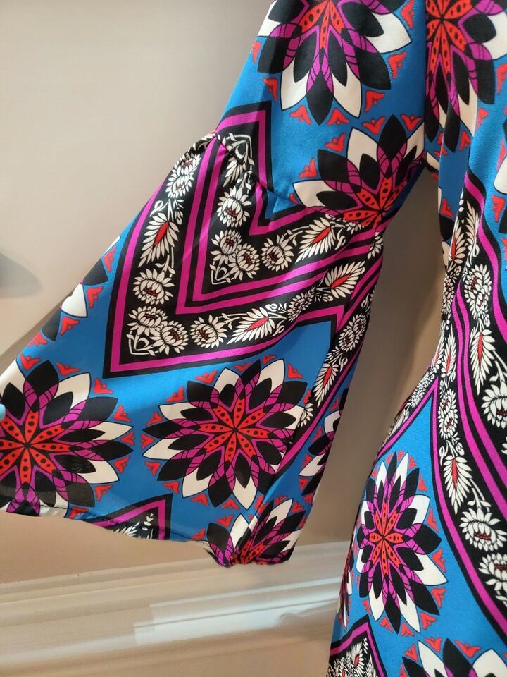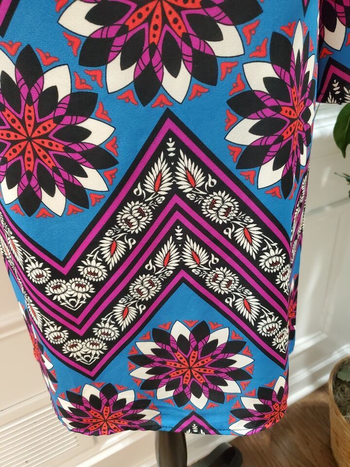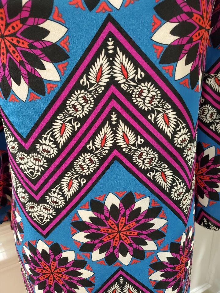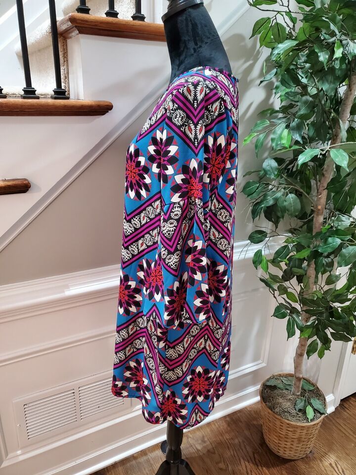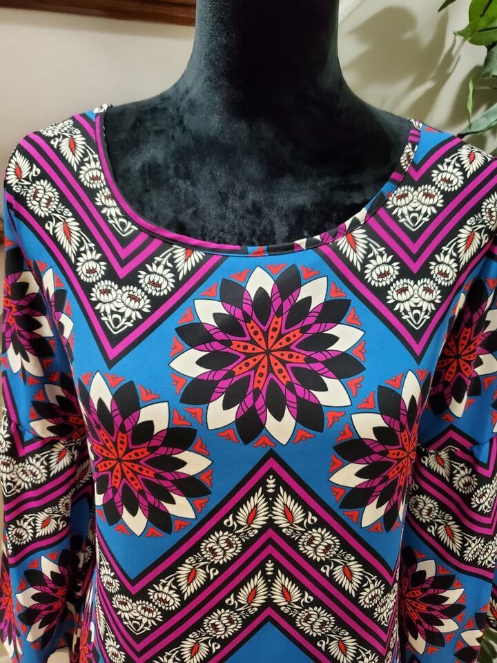 Peach Love Women Multicolor Polyester Round Neck Long Sleeve Knee Length Dress M