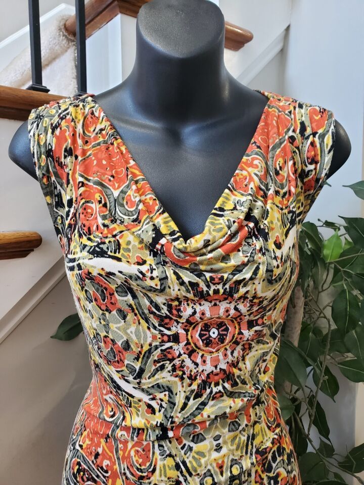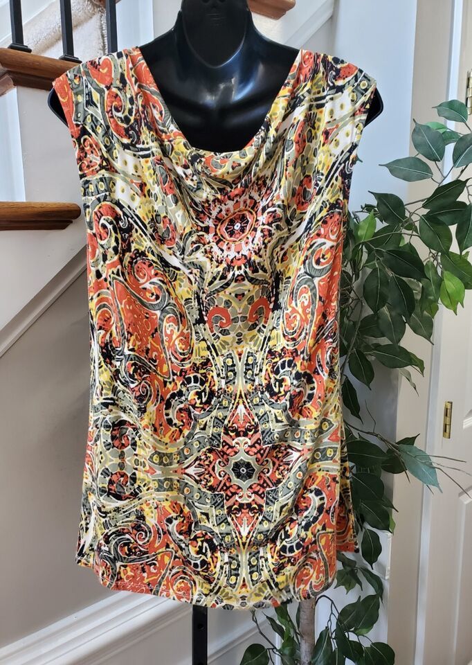 Cato Women's Multicolor Rayon Cowl Neck Sleeveless Casual Top Blouse Medium.