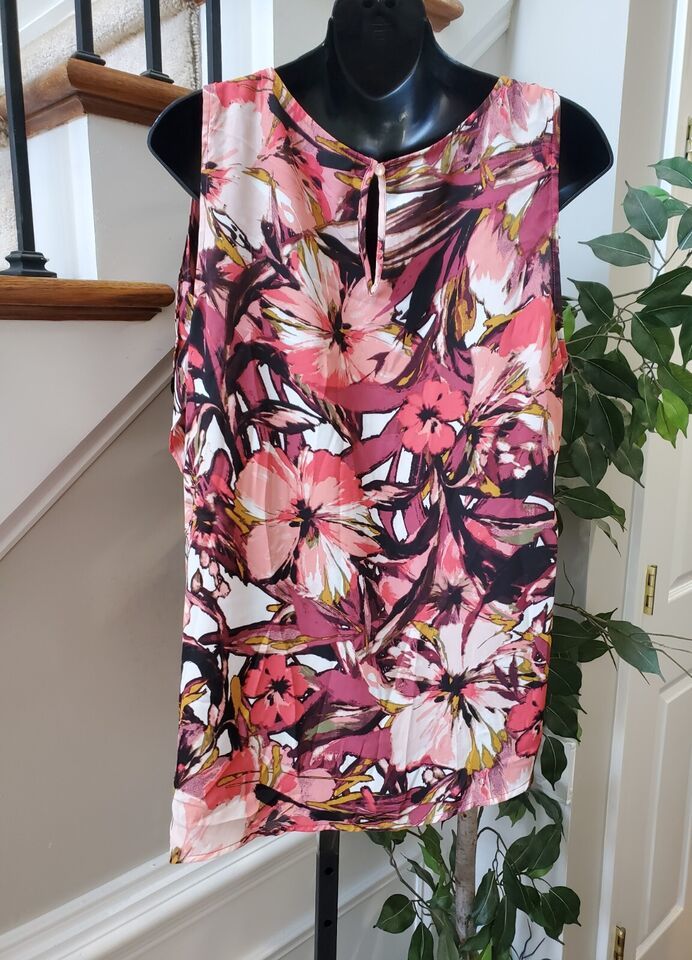 Thalia Sodi Women's Multicolor Floral Round Neck Sleeveless Top Blouse Large