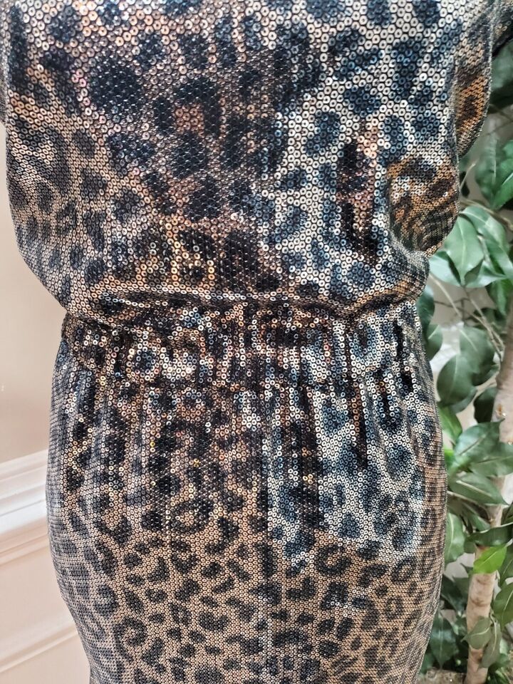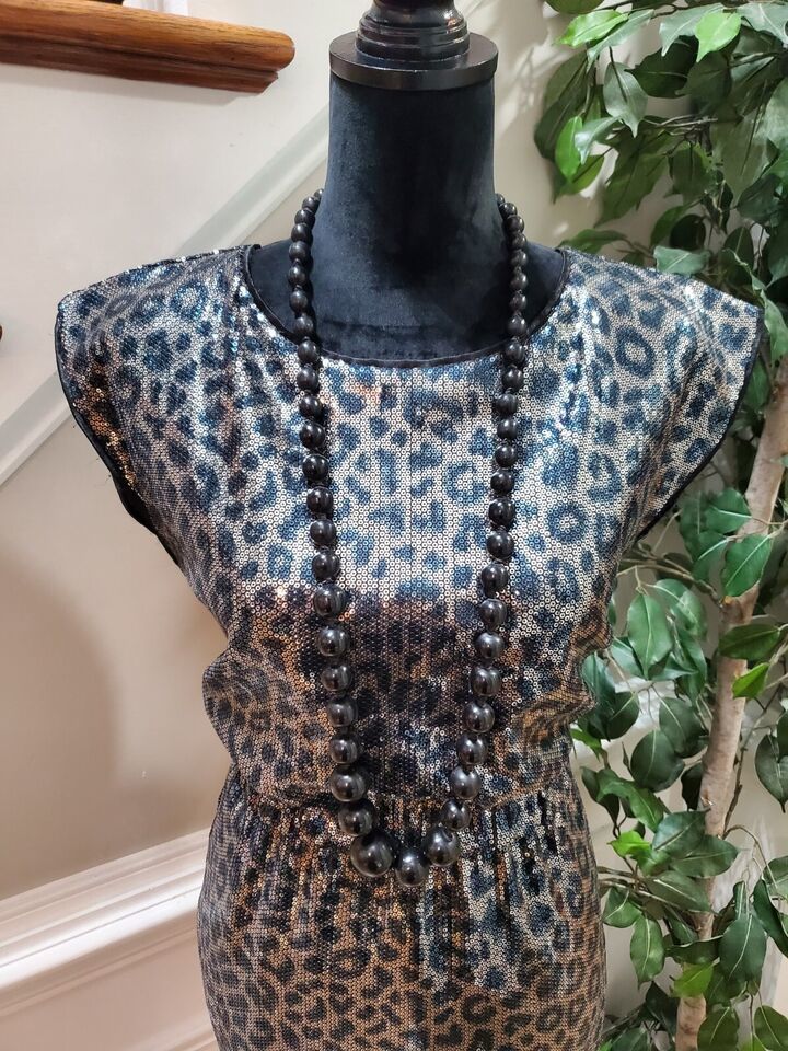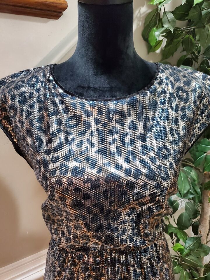Bedo Femme Animal Print Women's Polyester Round Neck Sleeveless Knee Length Dress Size Small Description Bedo Femme Animal Print Women's Polyester Round Neck Sleeveless Knee Length Dress Size Small. Product Detail ? Brand : Bedo Femme ? Size: S ? Color: Black Gold ? Material: Polyester ? Type: Dress ? Department: Women's ? Neck Style: Round Neck ? Sleeve Length: Sleeveless Please message me if you have any questions. I stand by all of my items before and after purchase. Please see my feedback.