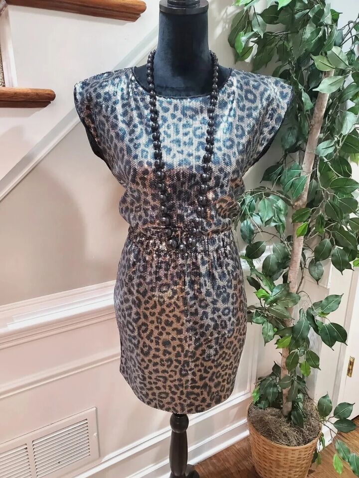 Bedo Femme Animal Print Round Neck Sleeveless Knee Length Dress Size Small