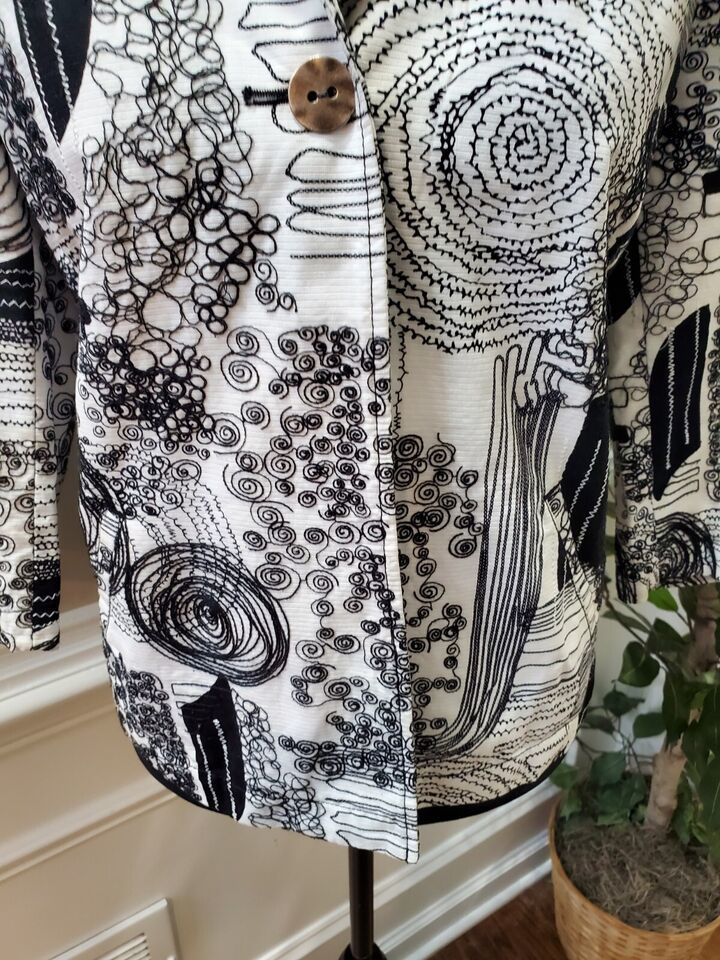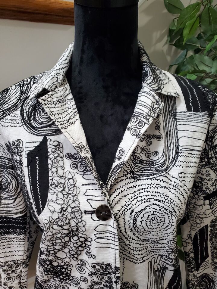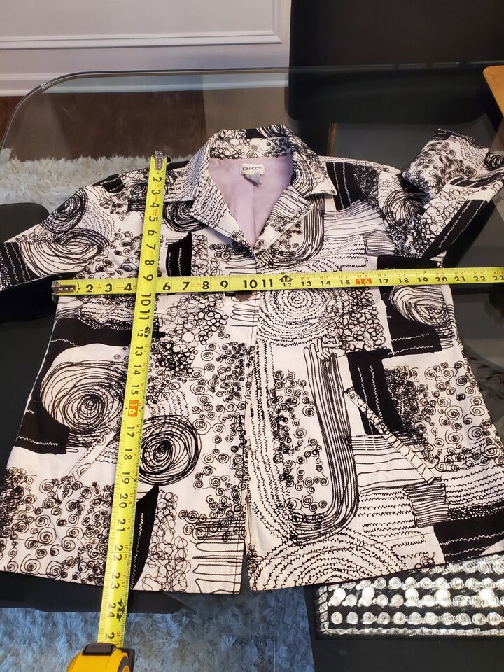 Chico's Women's Black & White Cotton Long Sleeve Single Breasted Jacket Blazer M