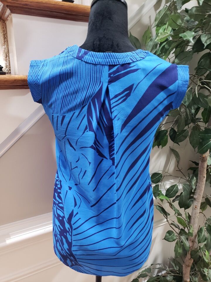 J. CREW Womens Blue Floral 100% Silk Sleeveless Casual V-Neck Top Blouse Size 00