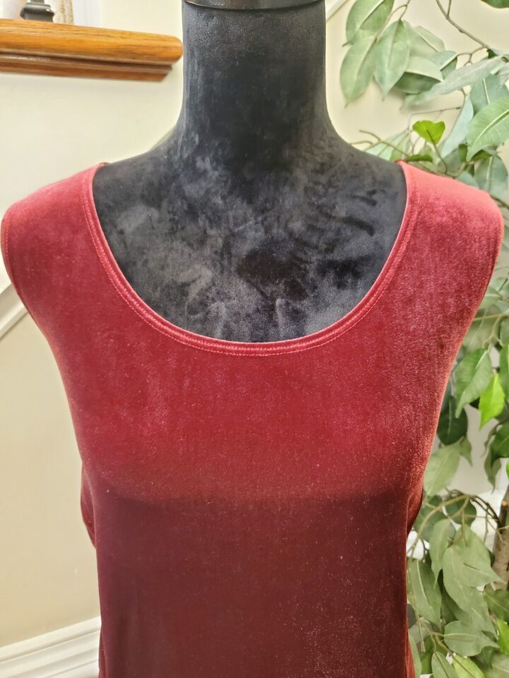 Susan Graver Women Burgundy Polyester Round Neck Sleeveless Knee Length Dress 2X