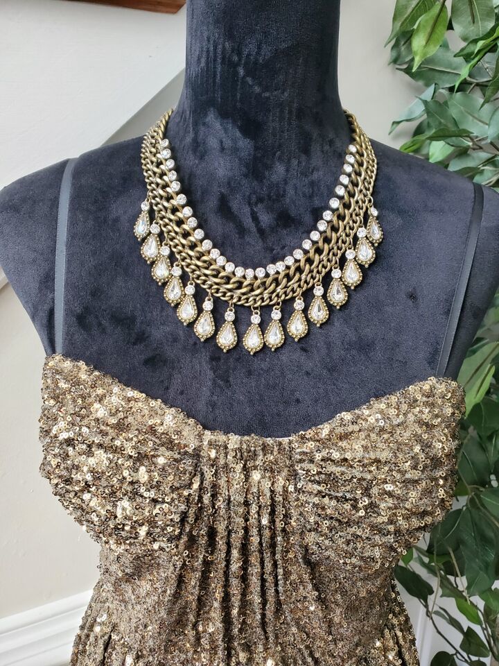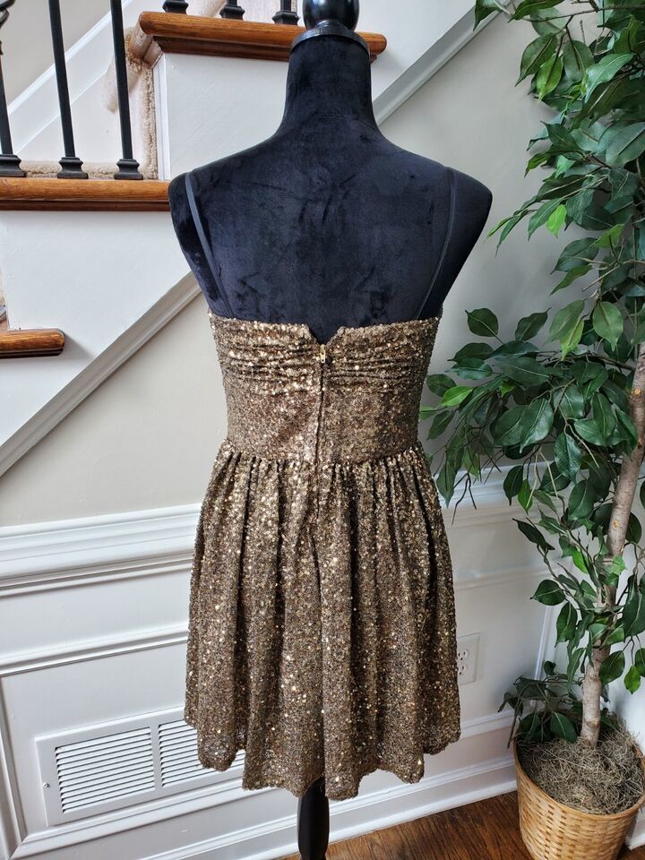 Jill Stuart Women's Gold Polyester Strappy Party Wear Knee Length Dress Size 4.