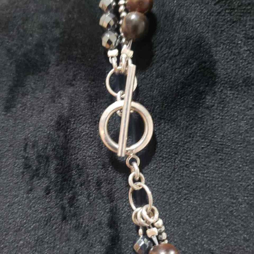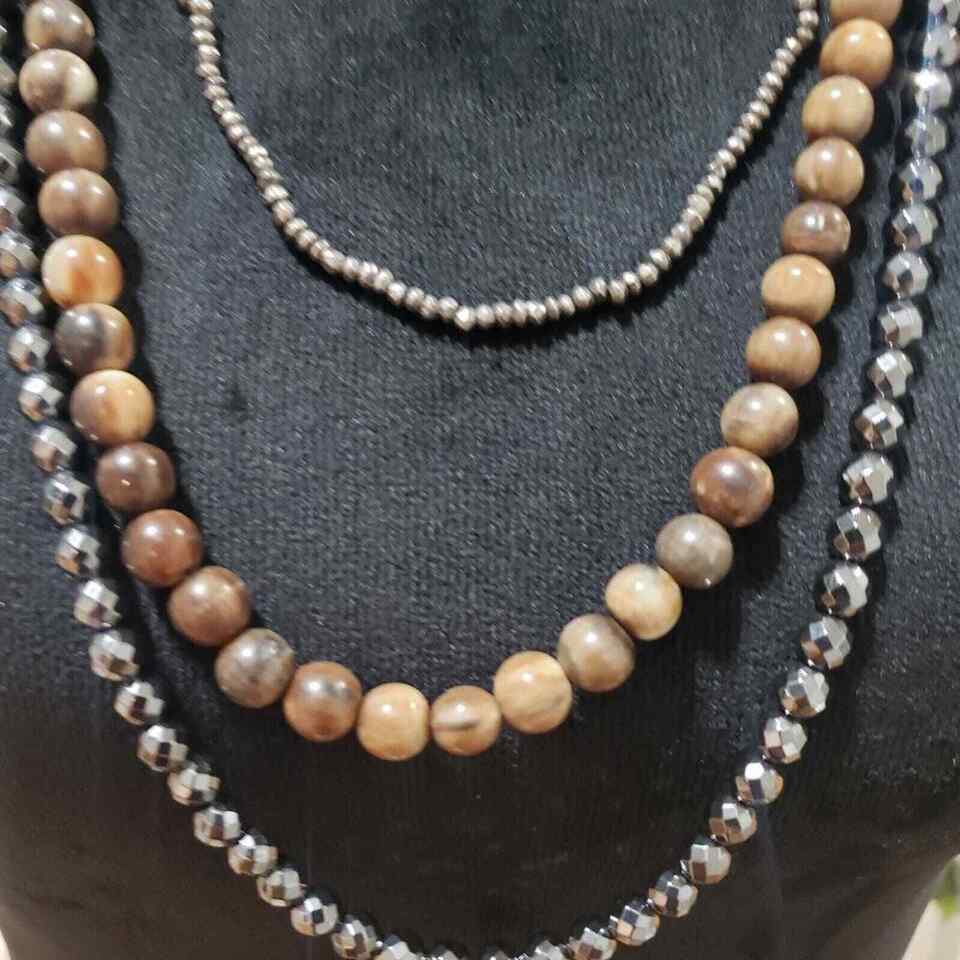 Womens Fashion Triple Strand Silver Tone Beads Brown Woooden Beads Long Necklace