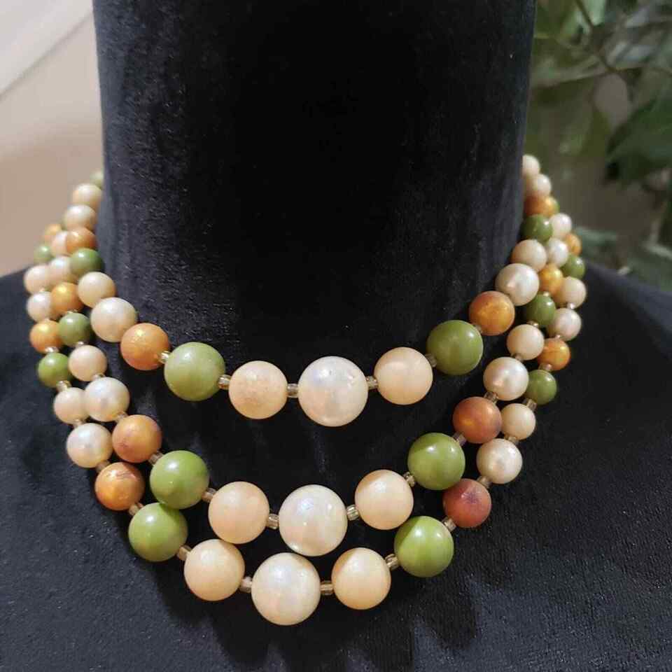Womens Fashion Triple Strand Pearl Costume Beaded Necklace with Lobster Clasp