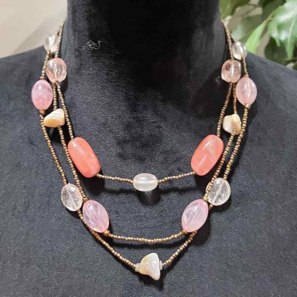 Womens Fashion Triple Strand Beaded Charm Collar Necklace with Lobster Clasp