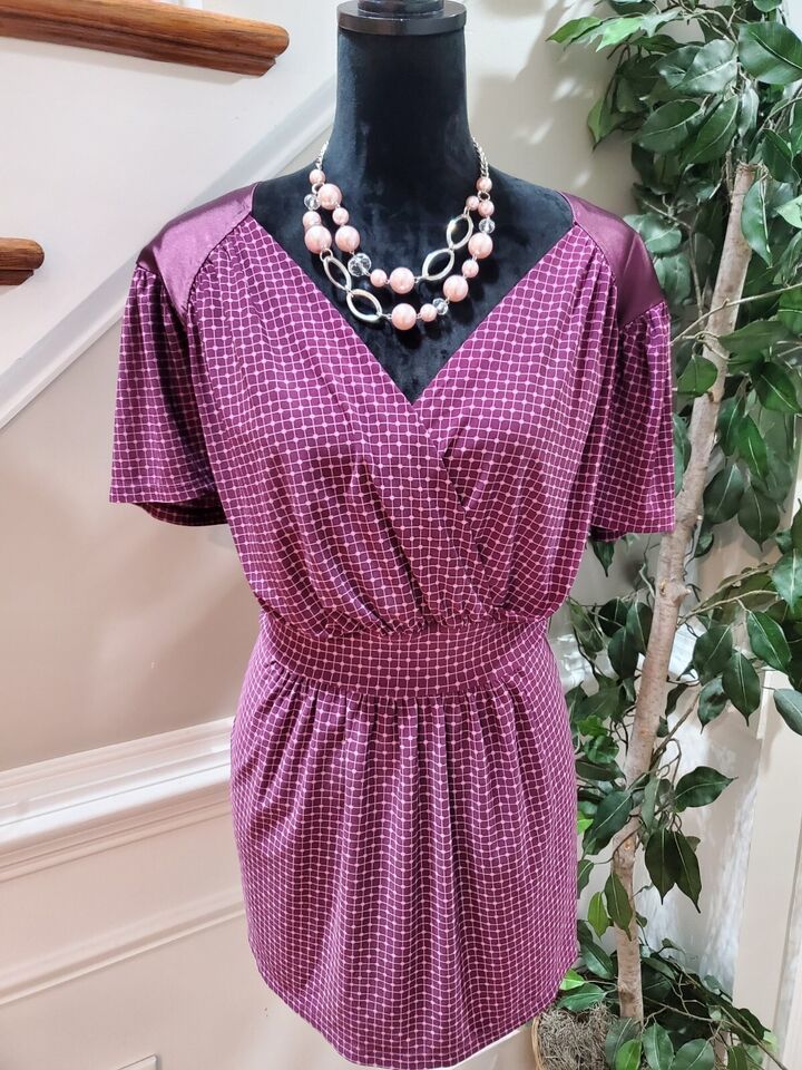 Daisy Fuentes Women's Purple Polyester V-Neck Short Sleeve Casual Top Blouse 3X.
