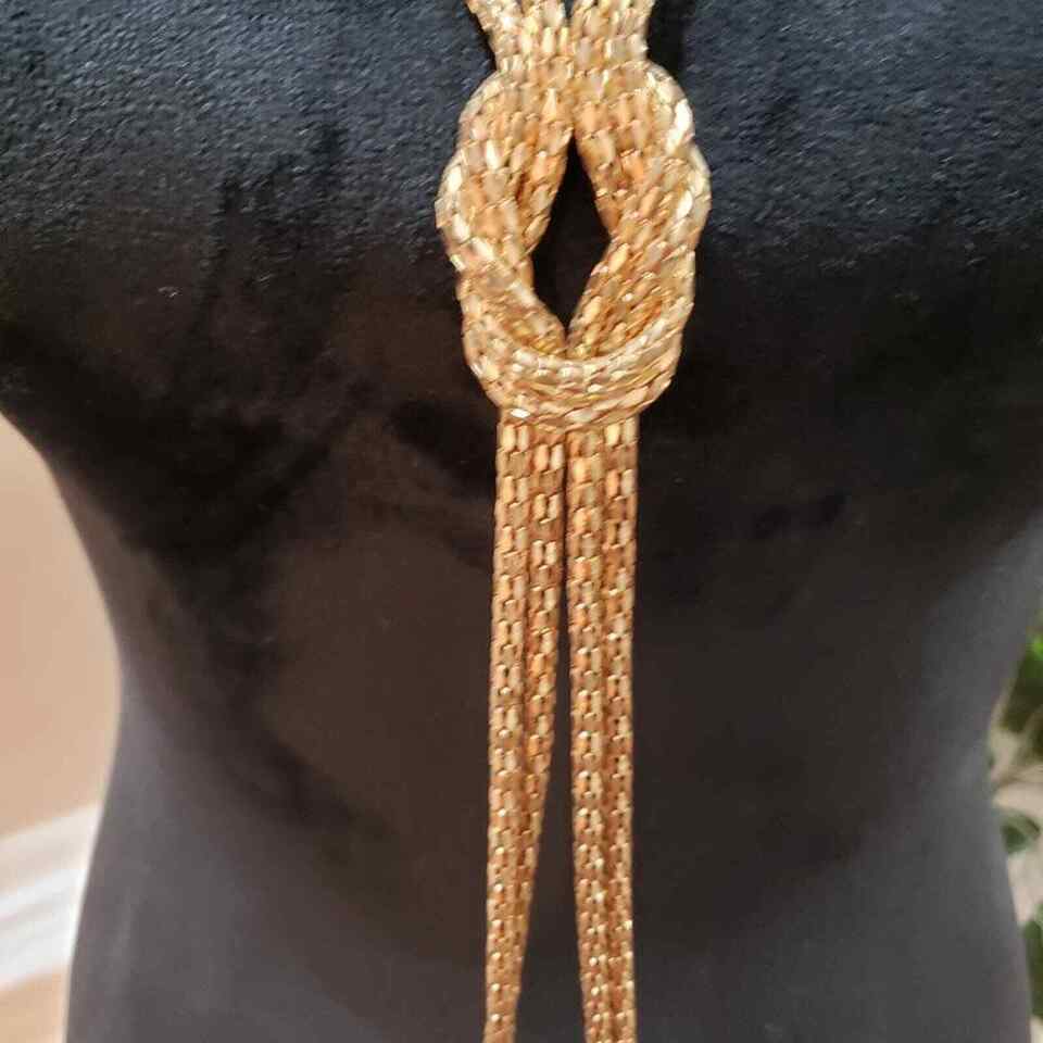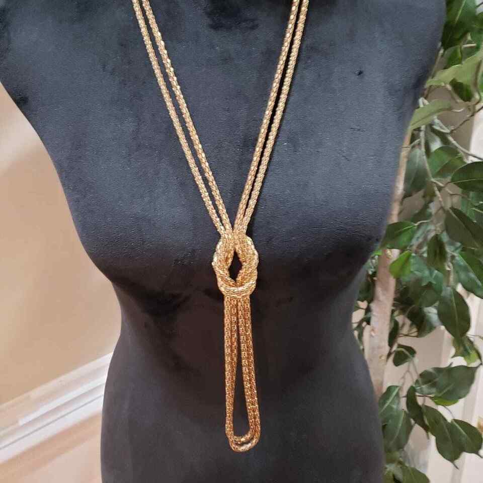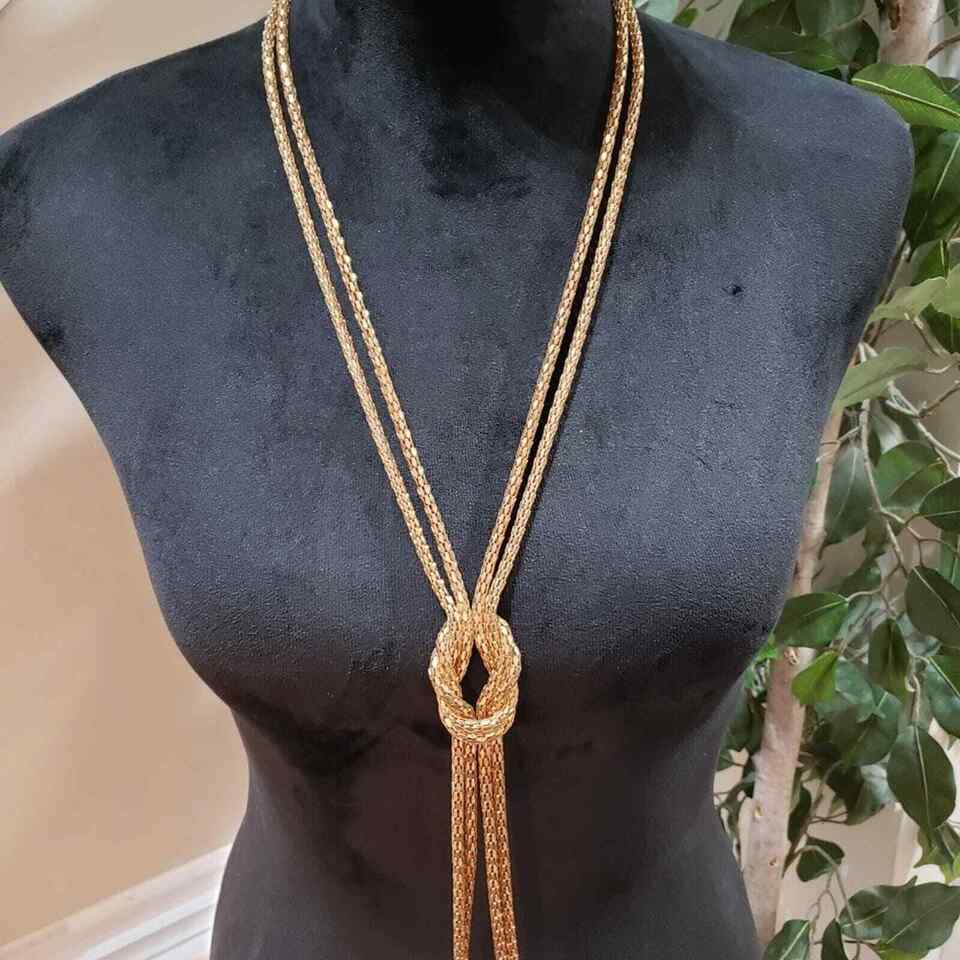 Womens Fashion Snake Chain Gold Tone Two Strand Knot Lariat Long Collar Necklace