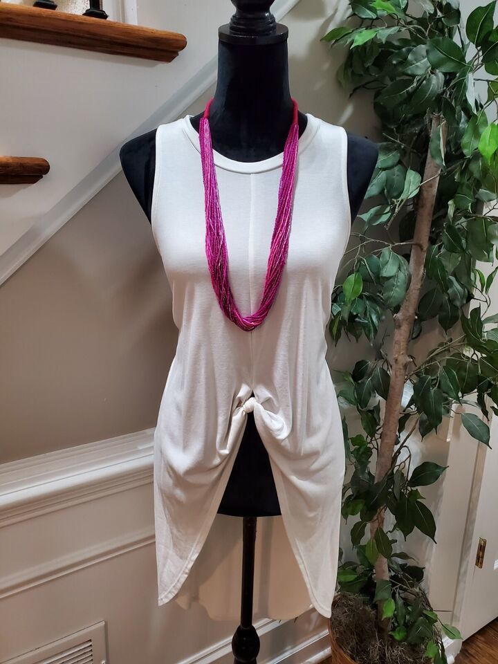 ASTR The Label Modal Blend Tie Knot Split Front High Low Style Tunic Tee Top S. Product Detail ? Brand : ASTR ? Size: XS ? Color: White ? Material: Modal ? Type: Top ? Department: Women's ? Neck Style: Round Neck ? Sleeve Style: Sleeveless Please message me if you have any questions. I stand by all of my items before and after purchase. Please see my feedback.
