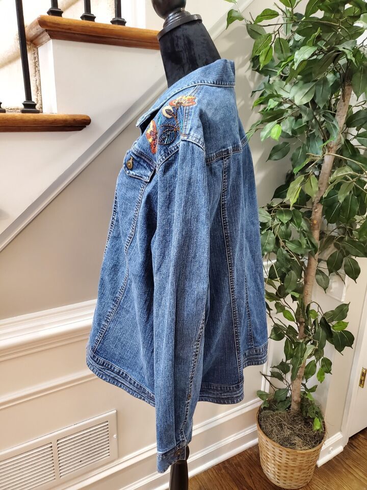 Alfred Dunner Womens Blue Denim Ramie Long Sleeve Buttons Front Jacket Blazer 20.