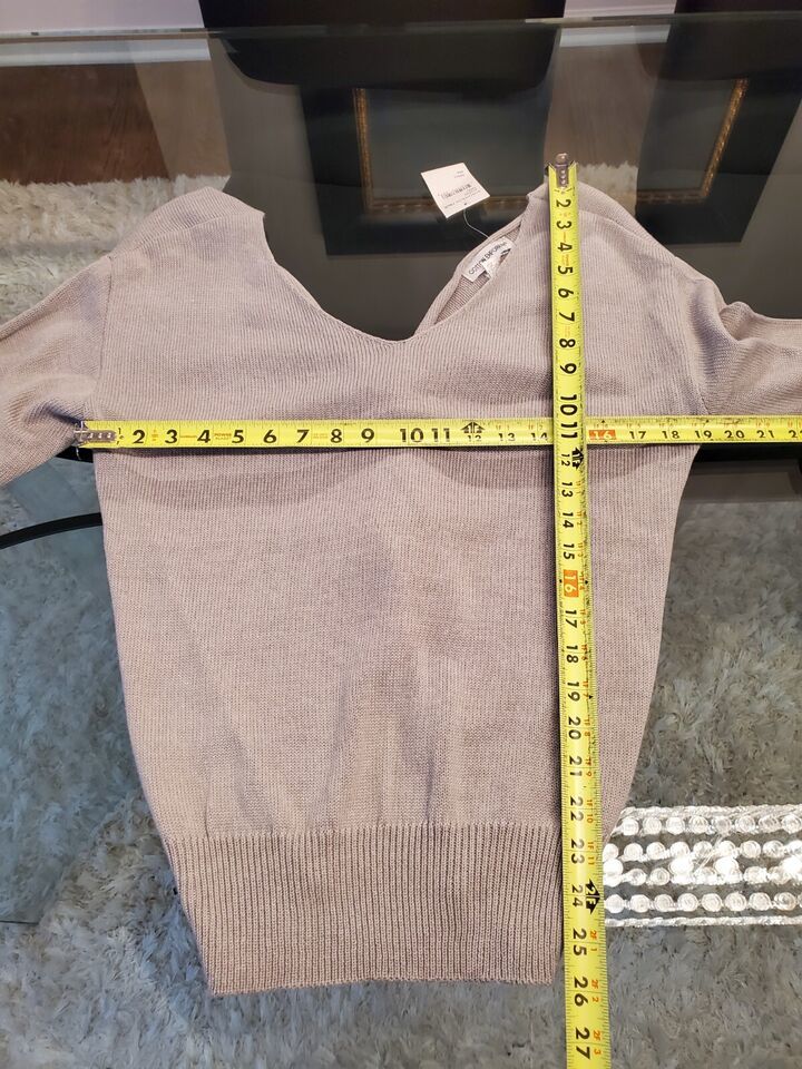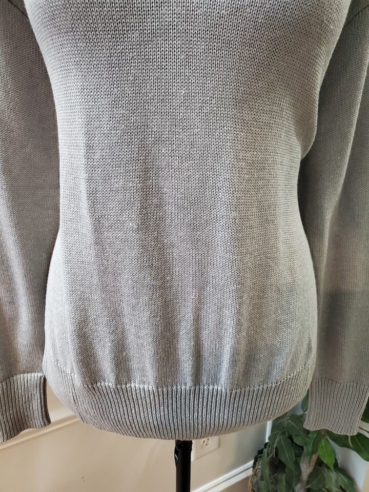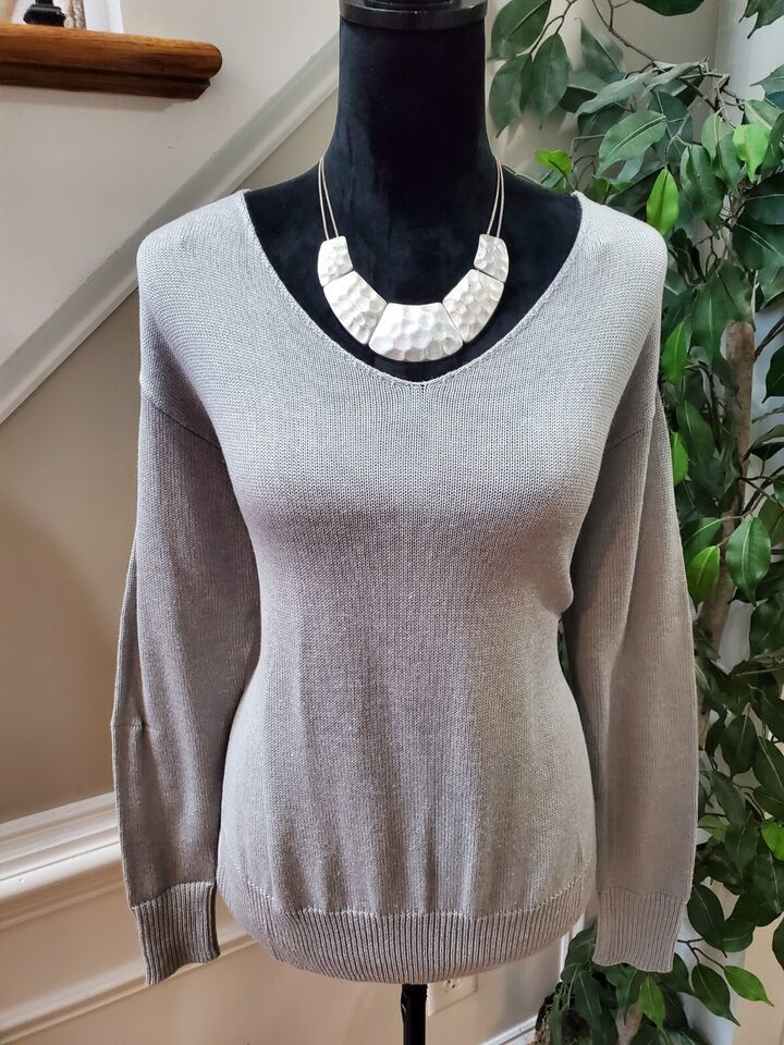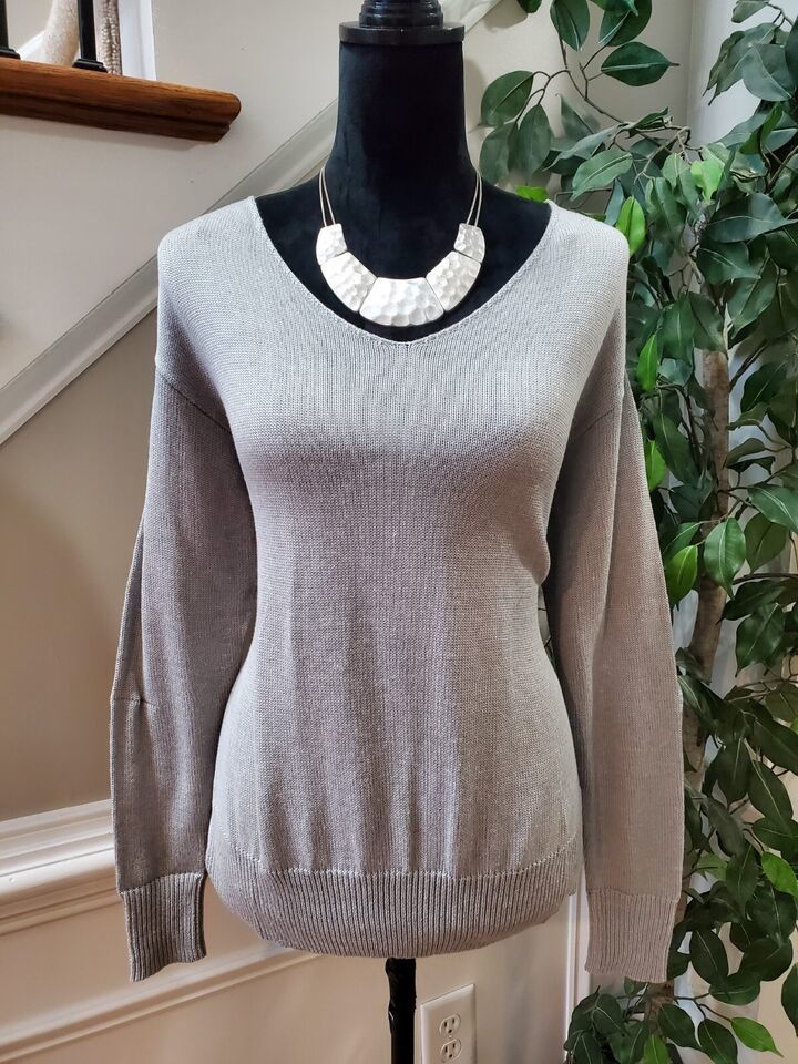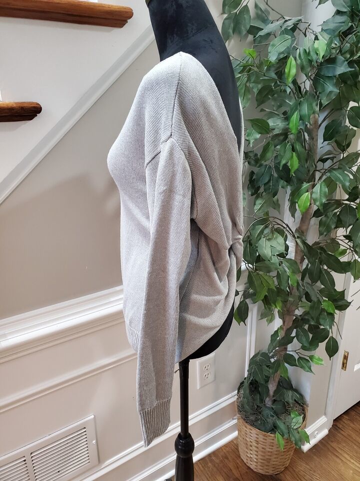 Cotton Emporium Knot Back Sweater Gray Knit Womens V Neck Size Small
