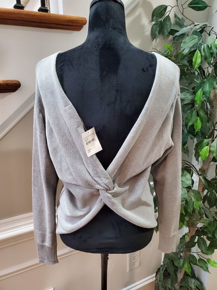 Cotton Emporium Knot Back Sweater Gray Knit and similar items