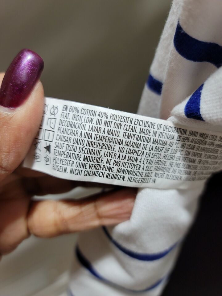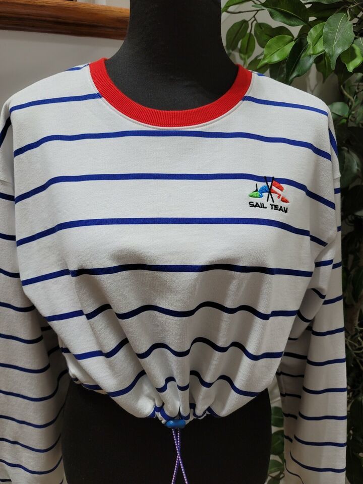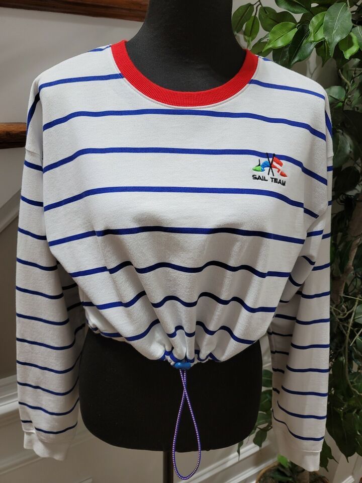 Forever21 Women White Blue Cotton/ PolyesterLong Sleeve Crew Neck Regular Fit Top Size M.