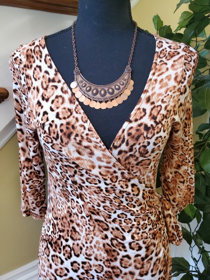 Forever 21 Women's Animal Print Wrap Dress Size S- Necklace Set Included