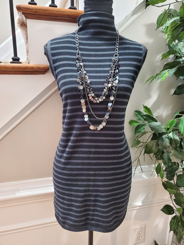 Chico's Womens Black & Gray Cotton High Neck Sleeveless Knee Length Dress Small