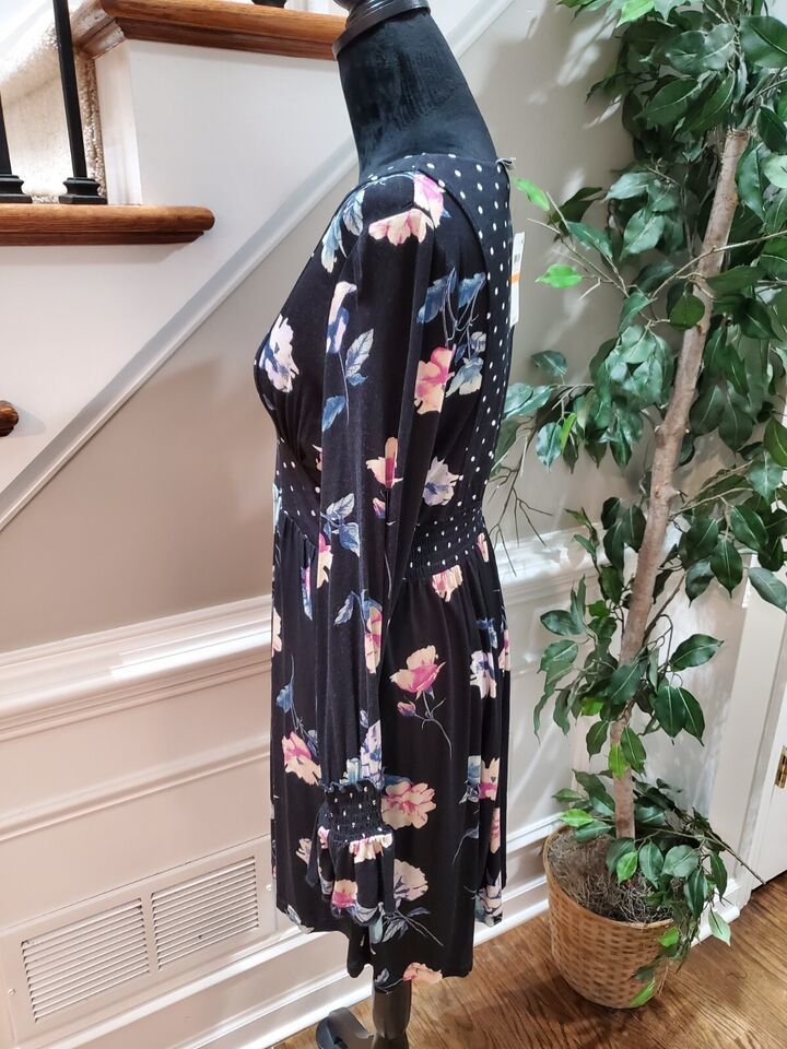 American Rag Cie Women's Black Polyester V-Neck Long Sleeve Knee Length Dress S