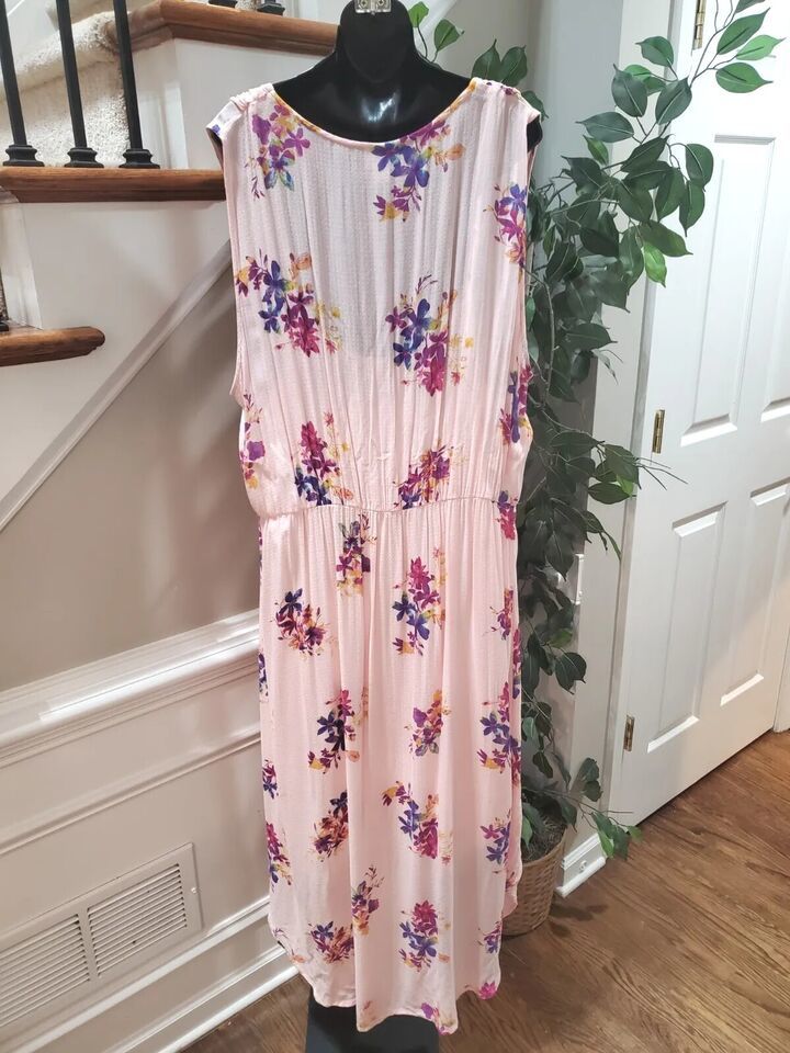 Ava & Viv Womens Pink Floral Rayon V-Neck Sleeveless Casual Knee Length Dress 3X