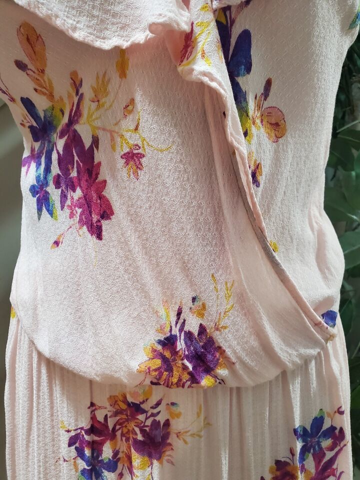 The dress is available in size 3X and is machine washable. It has accents of buttons and a collarless design, giving it a unique look. The floral pattern and flower theme make it perfect for any season, whether it's winter, summer, fall or spring. Add this dress to your wardrobe for a stylish and comfortable outfit option.