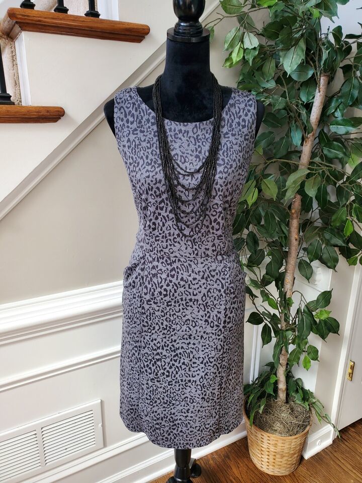 George Women's Gray Polyester Round Neck Sleeveless Knee Length Dress Size Large.