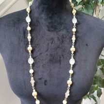 1928 Womens Fashion Clear Crystals Faux Pearl Beaded Long Necklace with Lobster