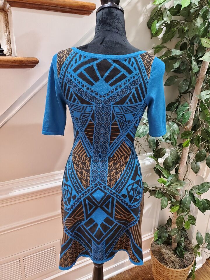 Flying Tomato Women's Blue Polyester Round Neck Short Sleeve Knee Length Dress S