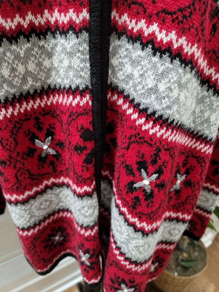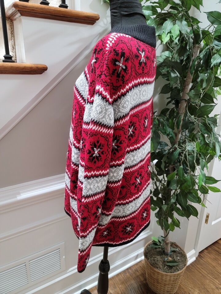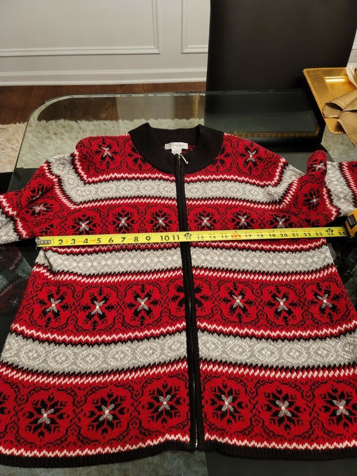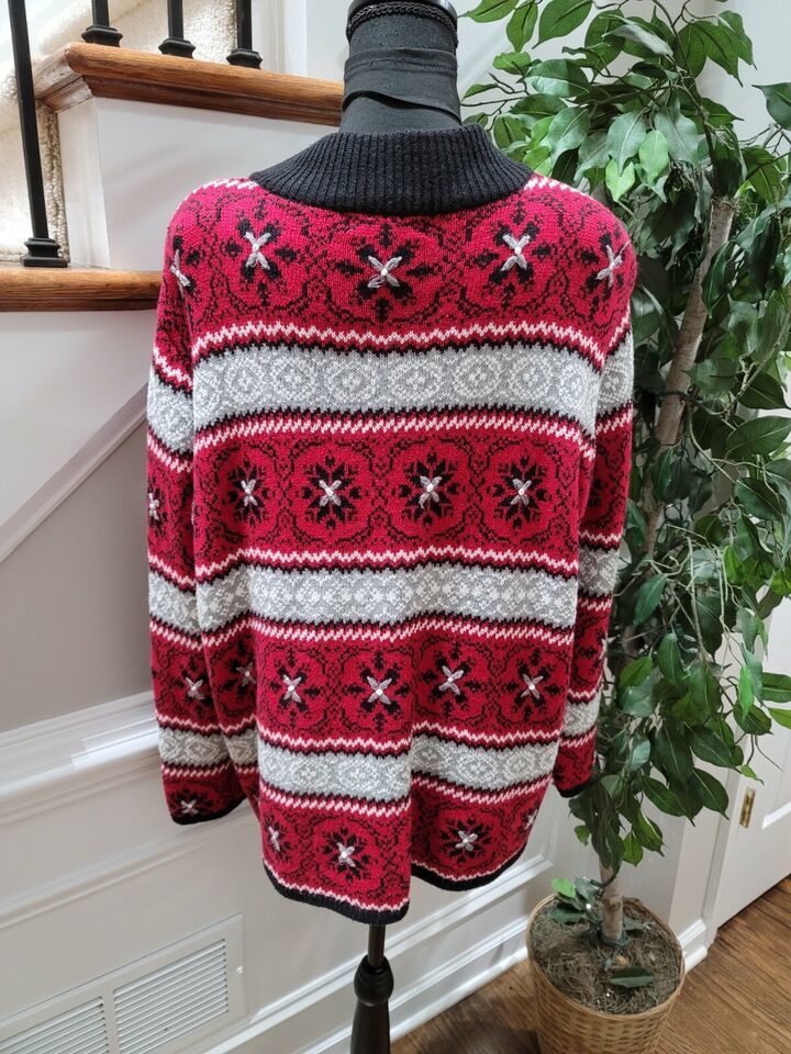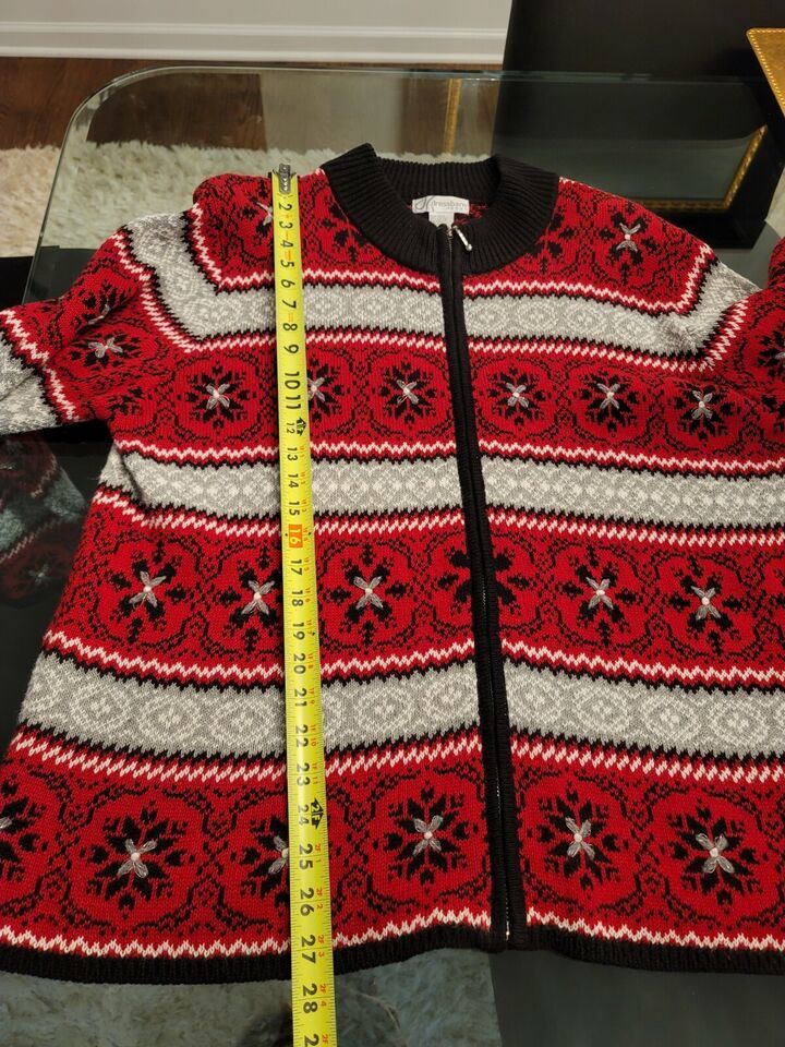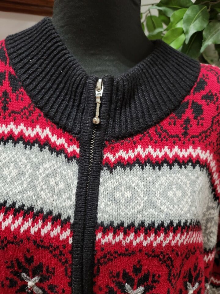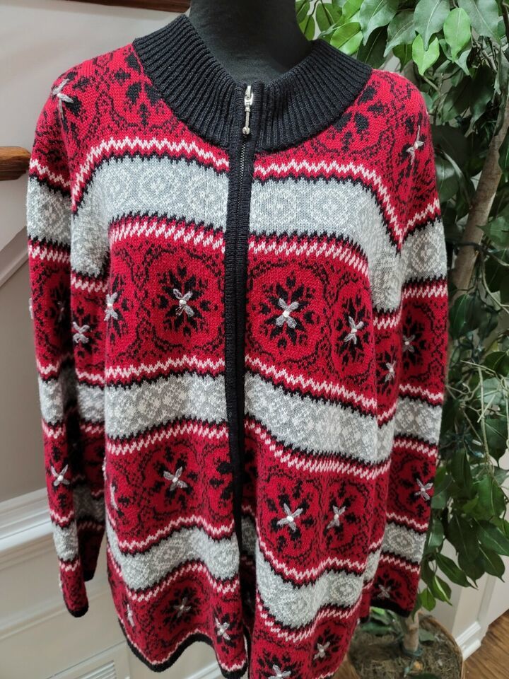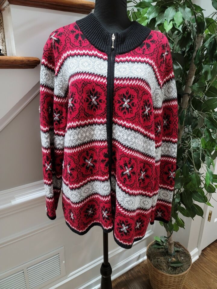 Dressbarn Women Red Black Ramie Full Zip Long Sleeve Casual Sweater Size 18/20
