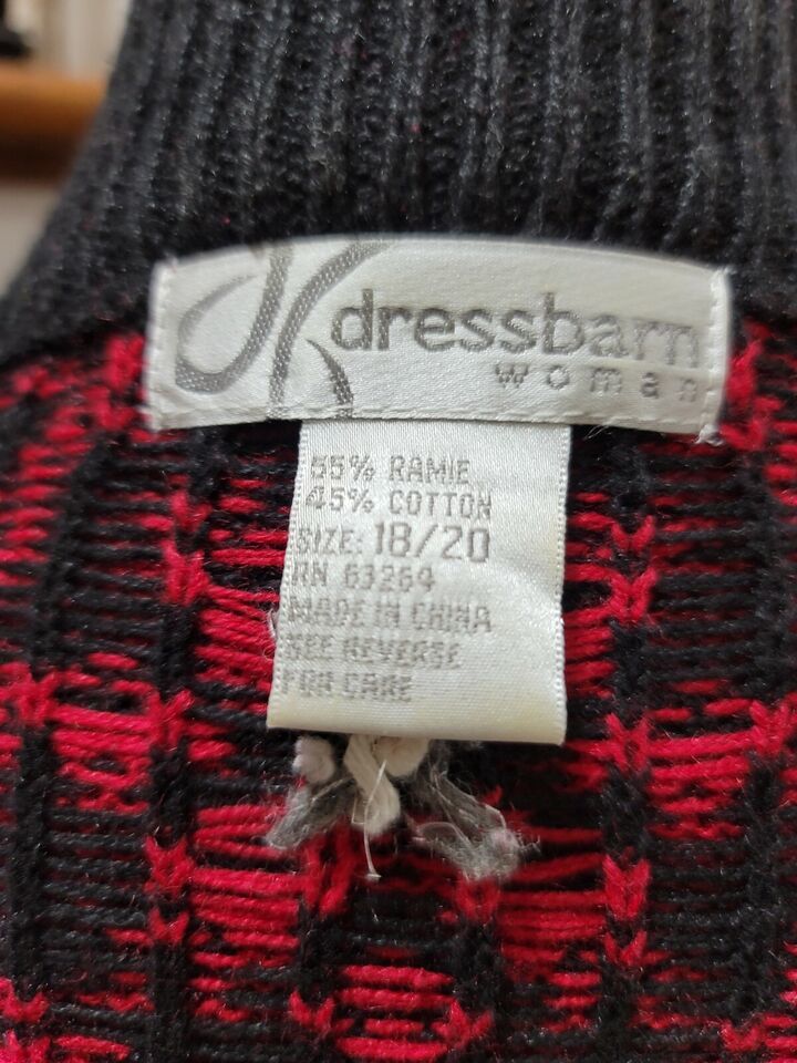 Dressbarn Women Red Black Ramie Cotton Full Zip Long Sleeve Casual Sweater Size 18/20.