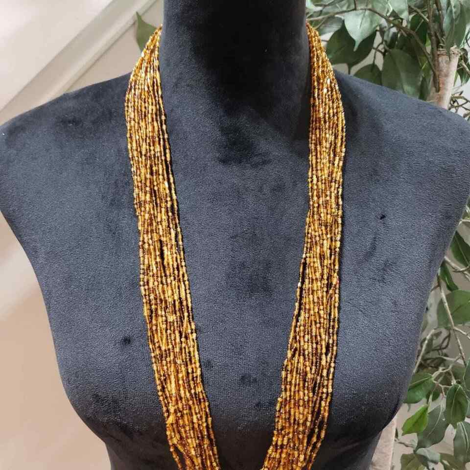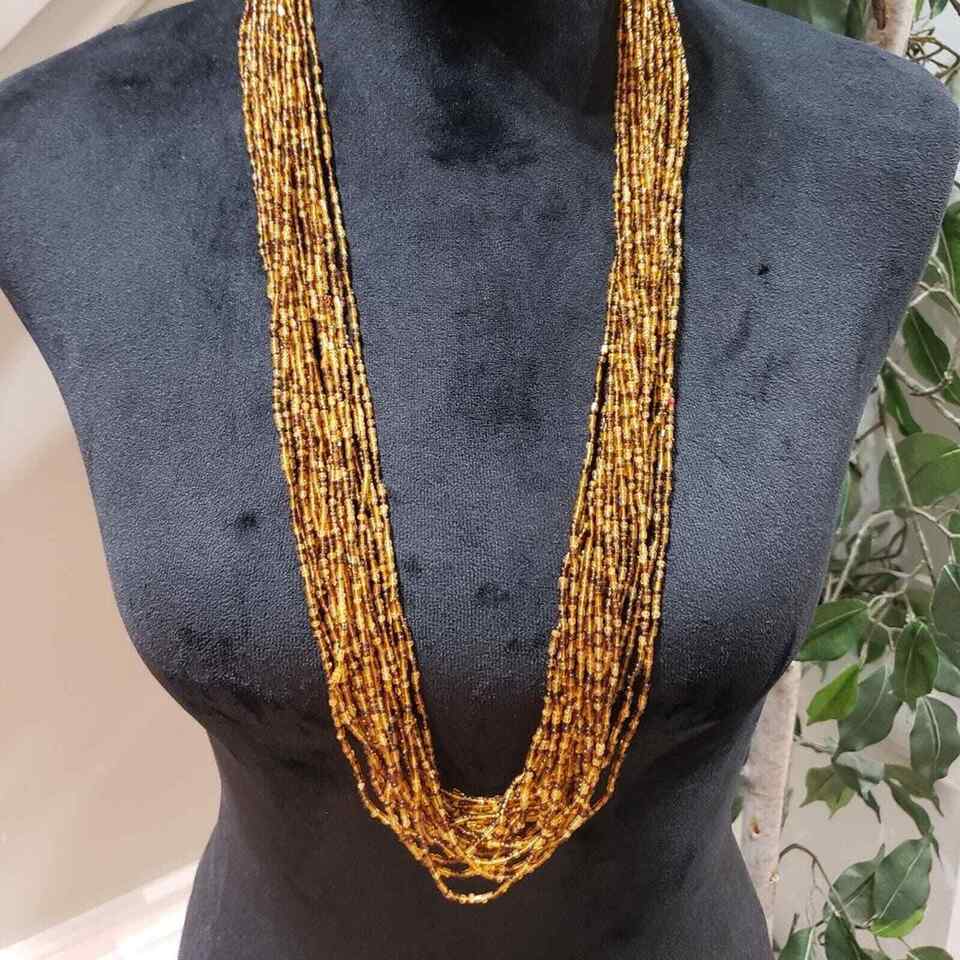 Women's Golden & Brown Multilayer Beaded Round Fashion Jewelry Necklace