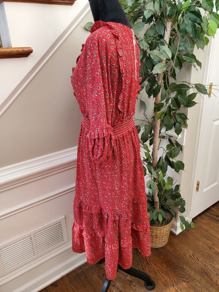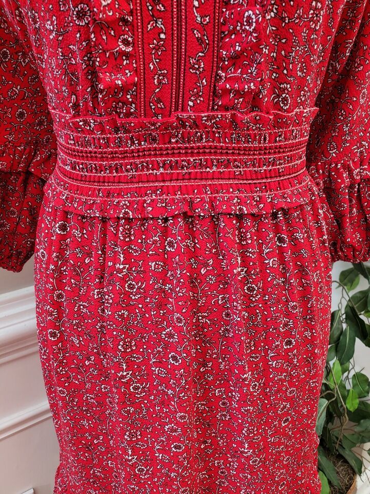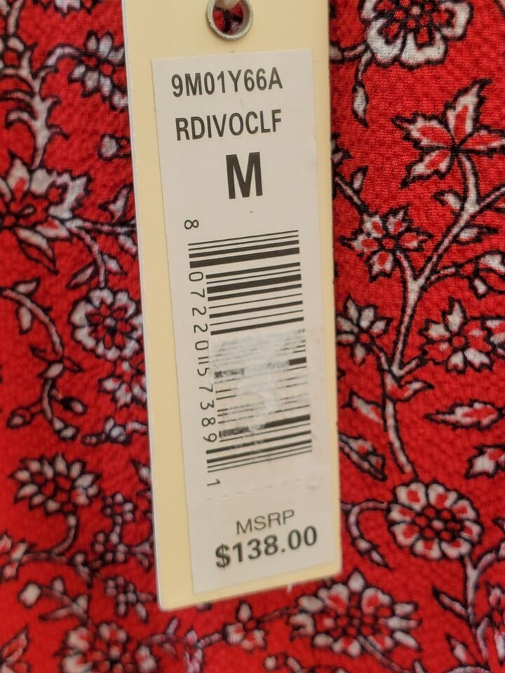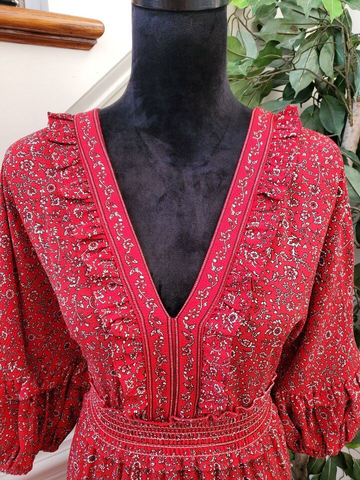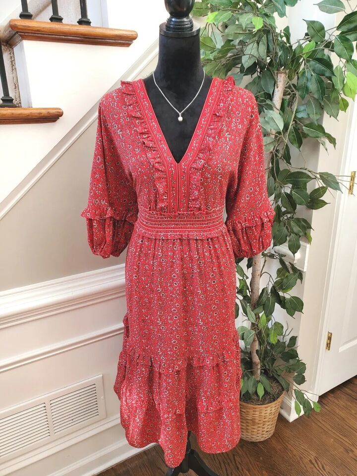 Max Studio Women Red Floral Polyester V Neck 3/4 Sleeve Knee Length Dress Size M.
