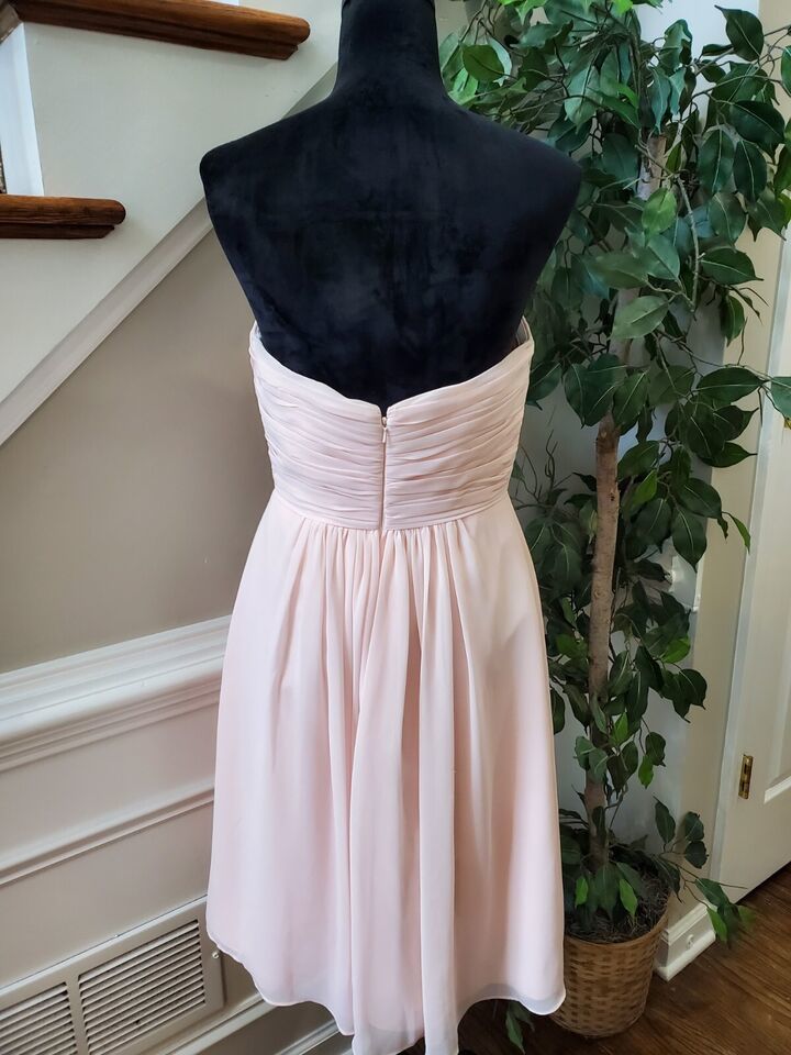 This beautiful Bill Levkoff Bridesmaid dress is sure to turn heads at any event. The dress features an off-the-shoulder neckline and a flattering fit and flare style. The knee-length dress is made of a lightweight polyester material with a solid pink color and a zipper accent. The dress is perfect for both casual and party/cocktail occasions.