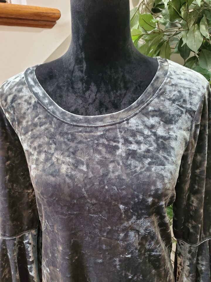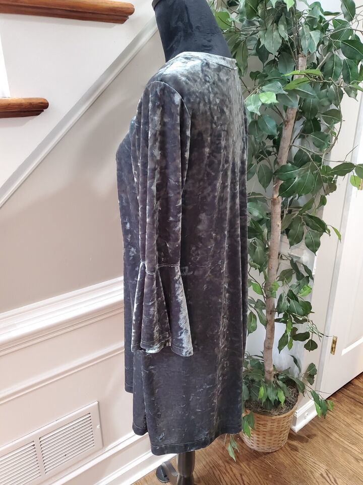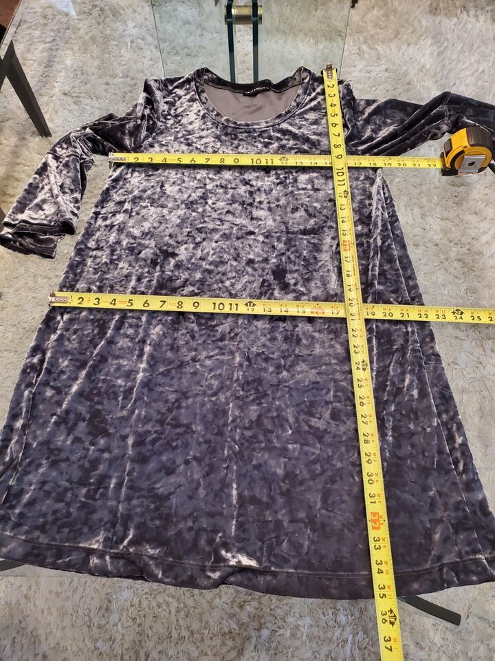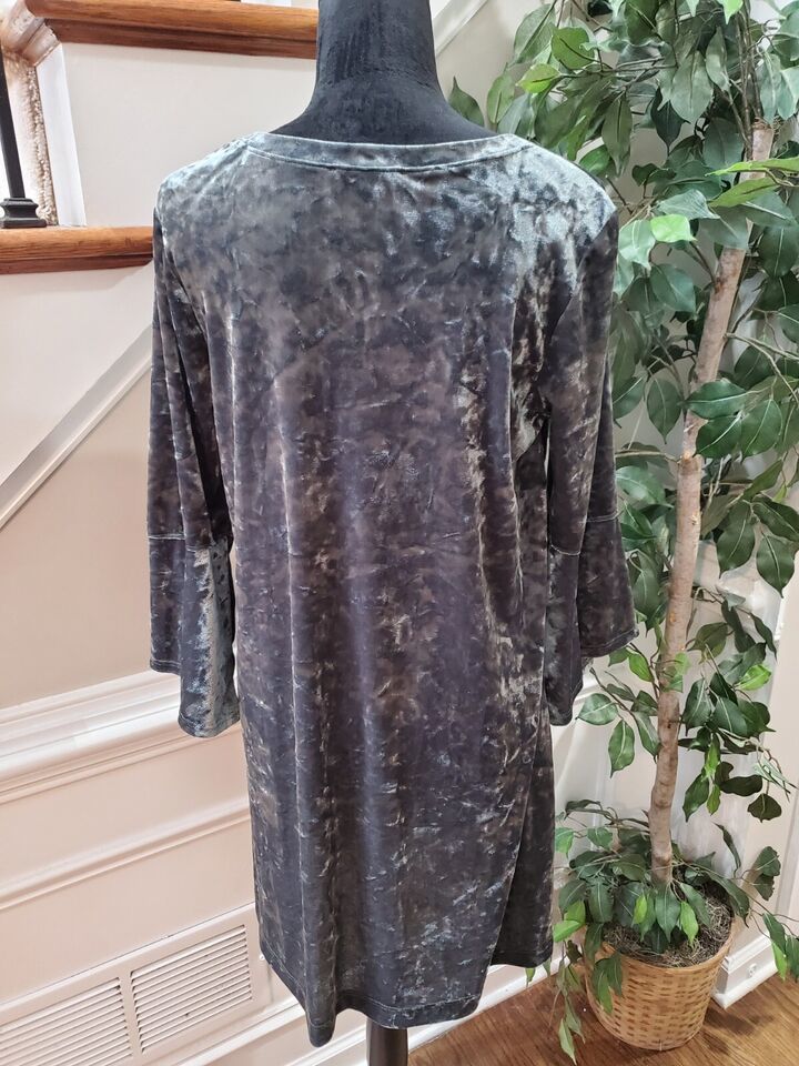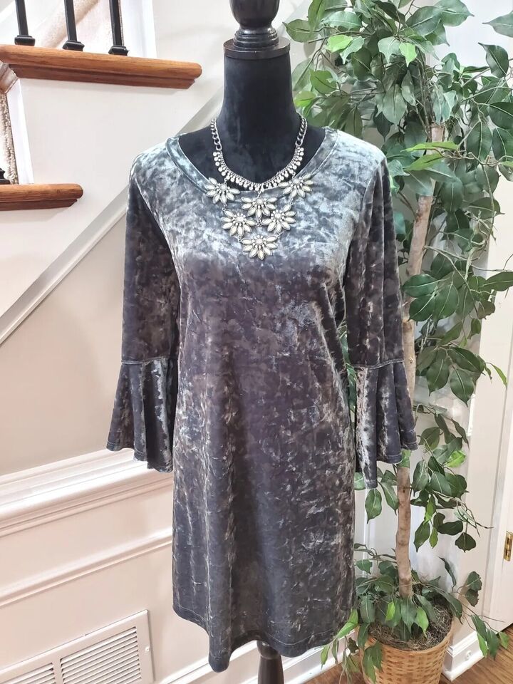 Nally & Millie Women Gray Polyester Round Neck Long Sleeve Knee Length Dress S/M