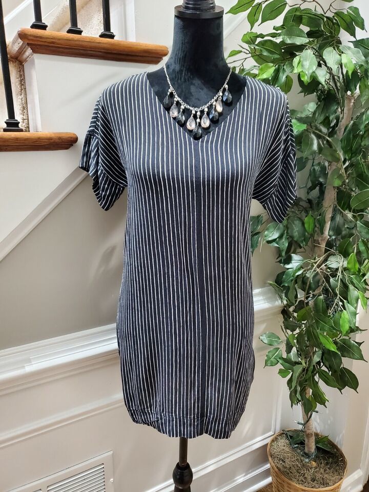 Madewell Women Black Lined Viscose V-Neck Short Sleeve Knee Length Dress Size XS