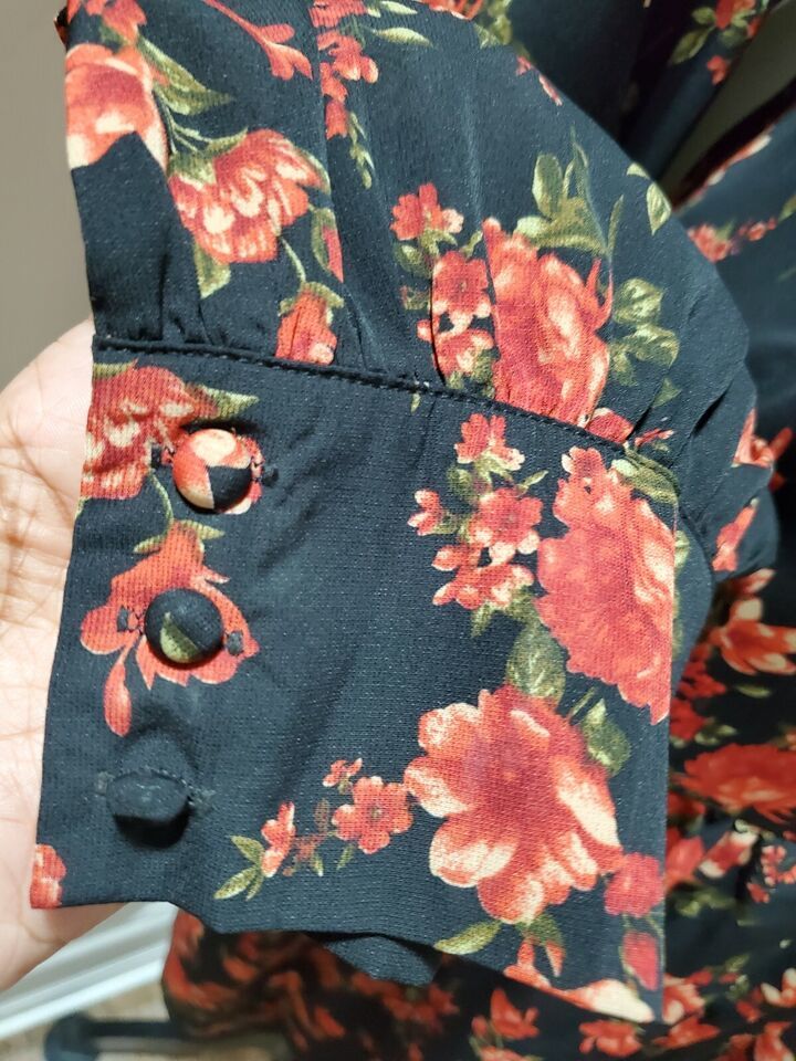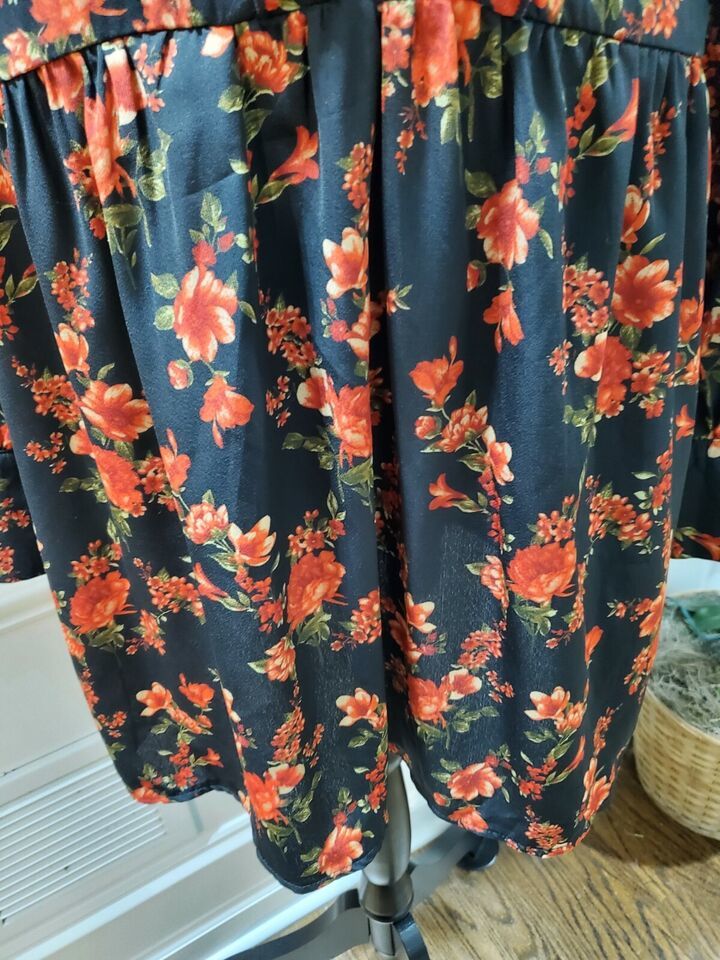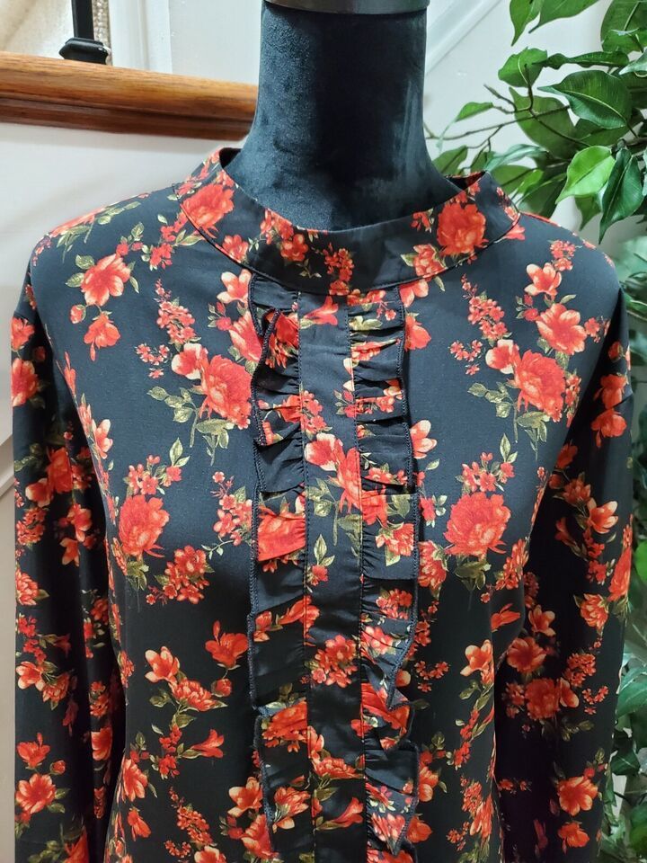 Boohoo Women's Black Floral Polyester Long Sleeve Mock Neck Knee Length Dress 20