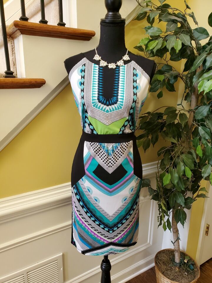 Roz Ali Women's Printed Sleeveless Sheath Dress Size 8. Condition is "Pre-owned". Shipped with USPS Priority Mail.