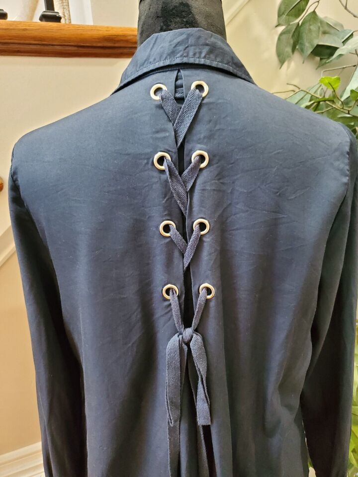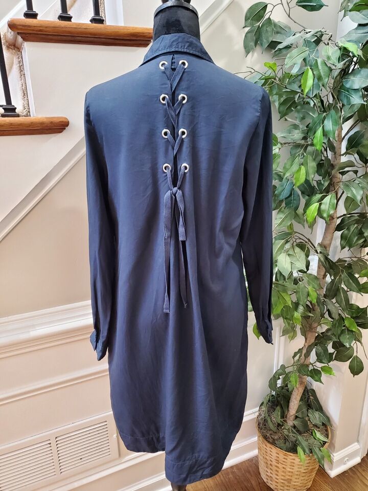Neiman Marcus Women's Blue Solid Collared Long Sleeve Knee Length Dress Size 6.
