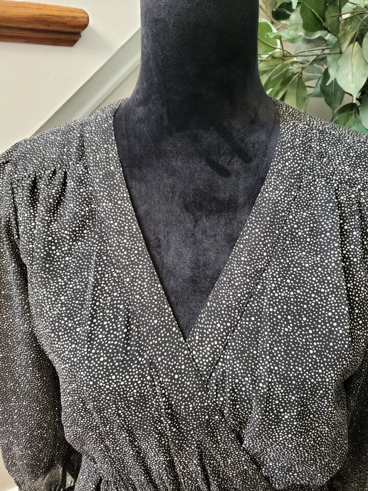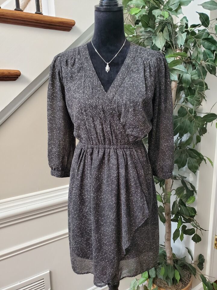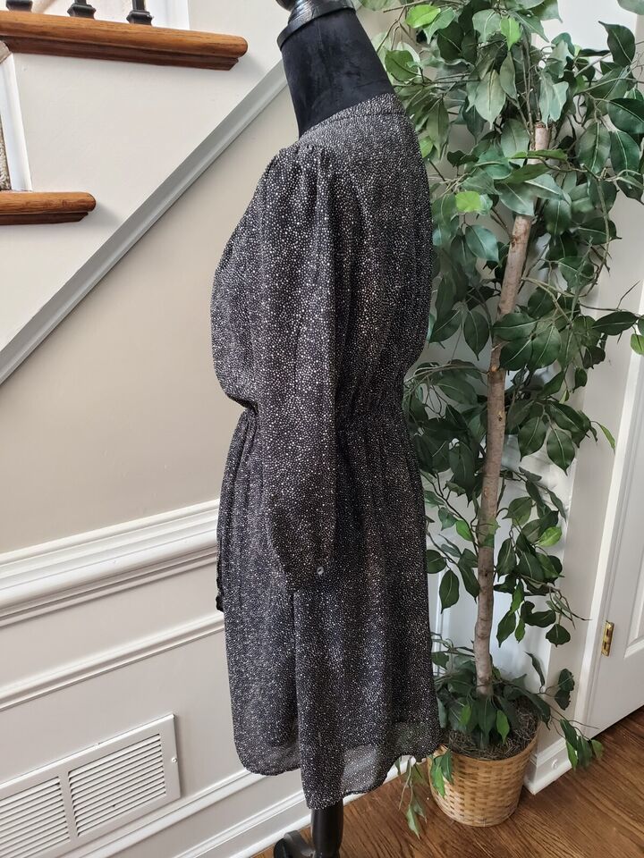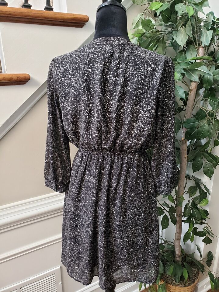Charming Charlie Women's Black Polyester V-Neck Long Sleeve Knee Length Dress M