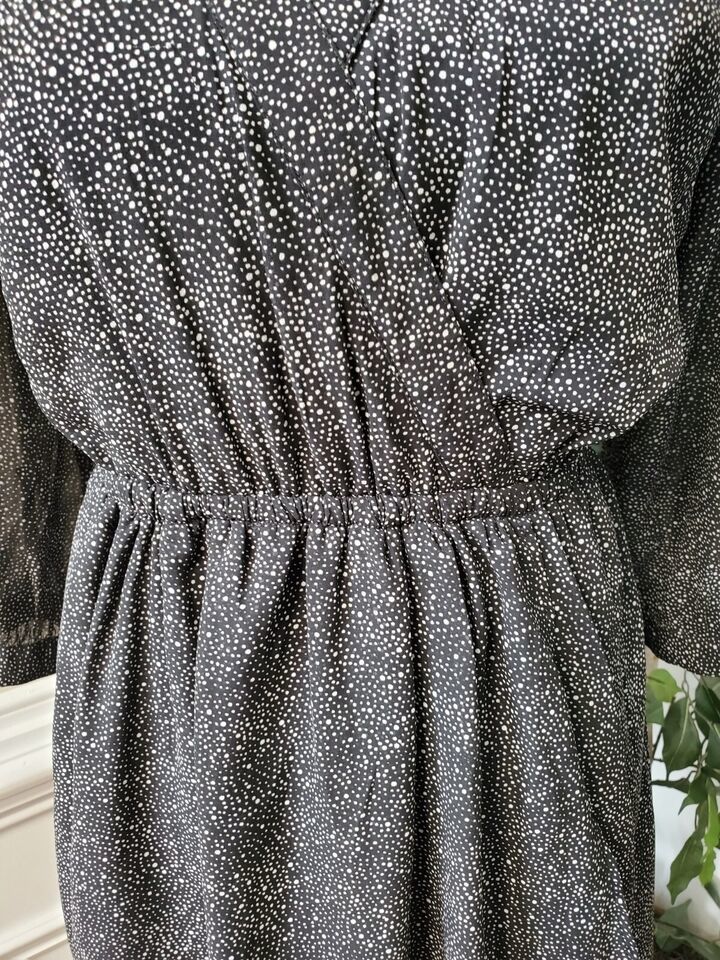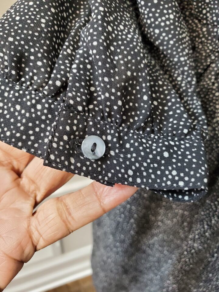 Elevate your style with this stunning knee-length dress from Charming Charlie. Crafted from high-quality polyester with a comfortable and lightweight feel, this dress features a chic polka dot pattern in timeless black color. The V-neckline and long sleeves with button accents add a touch of sophistication, making it perfect for any occasion from parties to casual outings.
