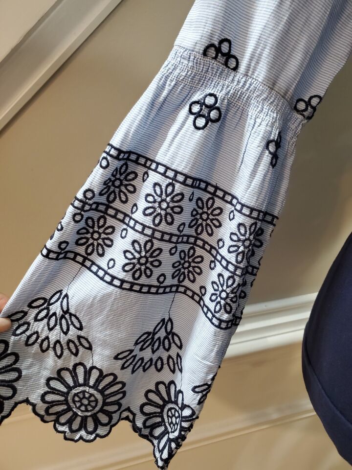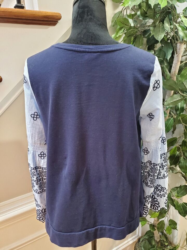 Crown Ivy Women Blue 100% Cotton Round Neck Long Sleeve Top Blouse Size Small.