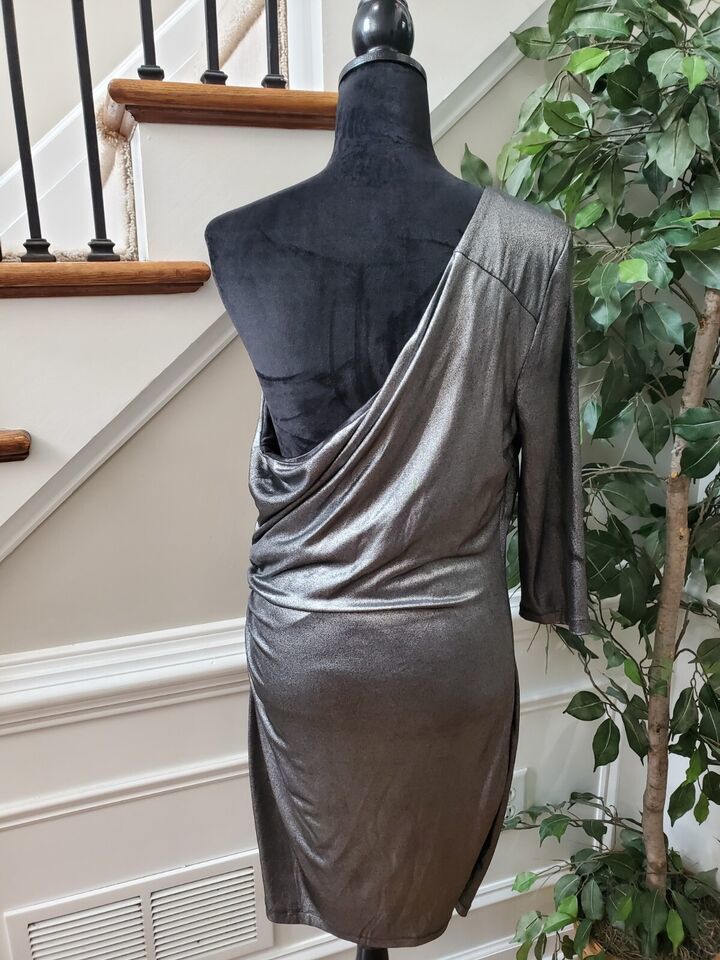 Baby Phat Women's Gray Polyester One Shoulder Off Long Sleeve Bodycon Dress 1X