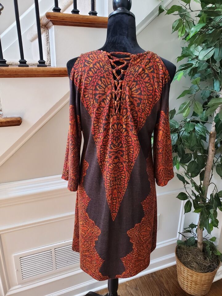 Cato Women's Polyester V-Neck Cold Shoulder Sleeve Knee Length Dress Size Medium
